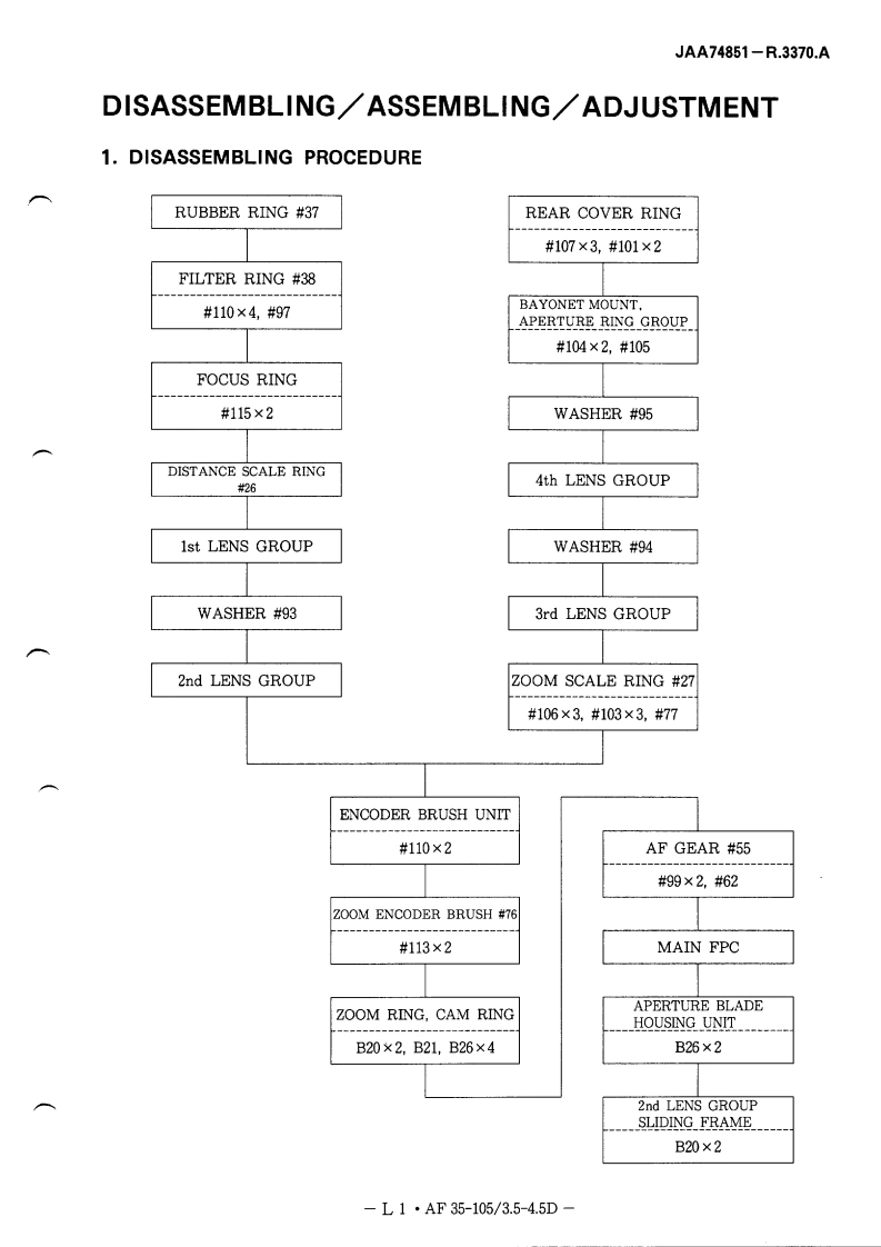 NIKON尼康数码相机AF-35-105mm-f3.5-4.5D维修手册零部件手册找手册网23小时前发布关注私信1.15MB28页050NIKON尼康数码相机AF-35-105mm-f3.5-4.5D维修手册零部件手册此内容为付费资源,请付费后查看¥19¥21黄金会员免费钻石会员免费立即购买您当前未登录!建议登陆后购买,可保存购买订单付费资源 第1页 / 共28页 第2页 / 共28页 第3页 / 共28页 第4页 / 共28页 第5页 / 共28页 第6页 / 共28页 第7页 / 共28页 第8页 / 共28页 第9页 / 共28页 第10页 / 共28页 试读已结束,还剩18页,您可下载完整版后进行离线阅读 THE ENDNikon 文本预览 JAA74851-R.3370.A作成承認印配布許可印竹一比天我GMMAF Zoom-Nikkor 35-105mm f/3.5-4.5D入REPAIR MANUAL修理指針NikonNIKON CORPORATIONTokyo.Japan©Copyright1994ALL RIGHTS RESERVED無断后戴在莱少∥Printed in Japan October 1994 查看更多 收起部分 喜欢就支持一下吧收藏