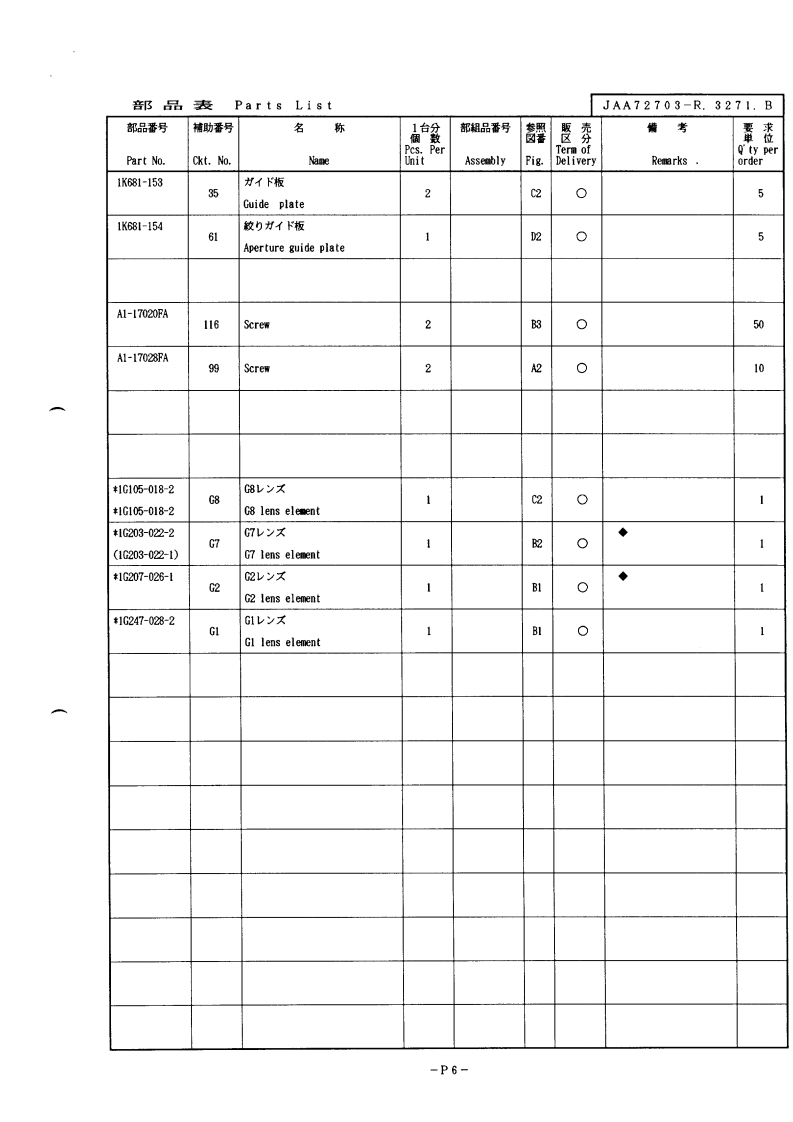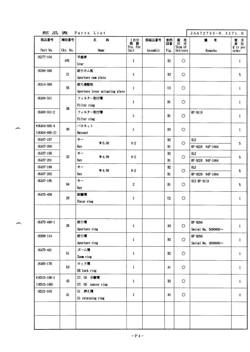 JAA72703-R.3271.B作成承認印配布許可印GMAF Zoom-Nikkor 35-70mm f/3.3-4.5S8r.#4,000,001-AisPARTS LIST (REVISED-1)修理部品表(改酊一1)KONIKON CORPORATIONTokyo.JapanCopyright C1995 by Nikon Corporation.Previous edition copyright C)1989All Rights Reserved.Sep.15,1995無断耘裁苍禁寸!ed in Japan