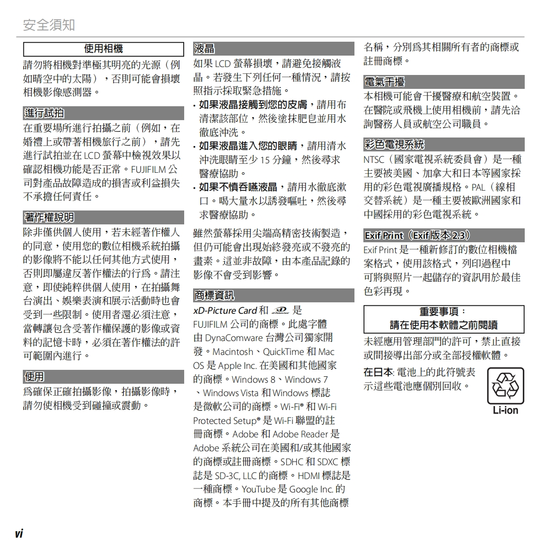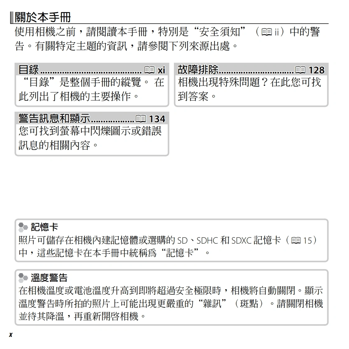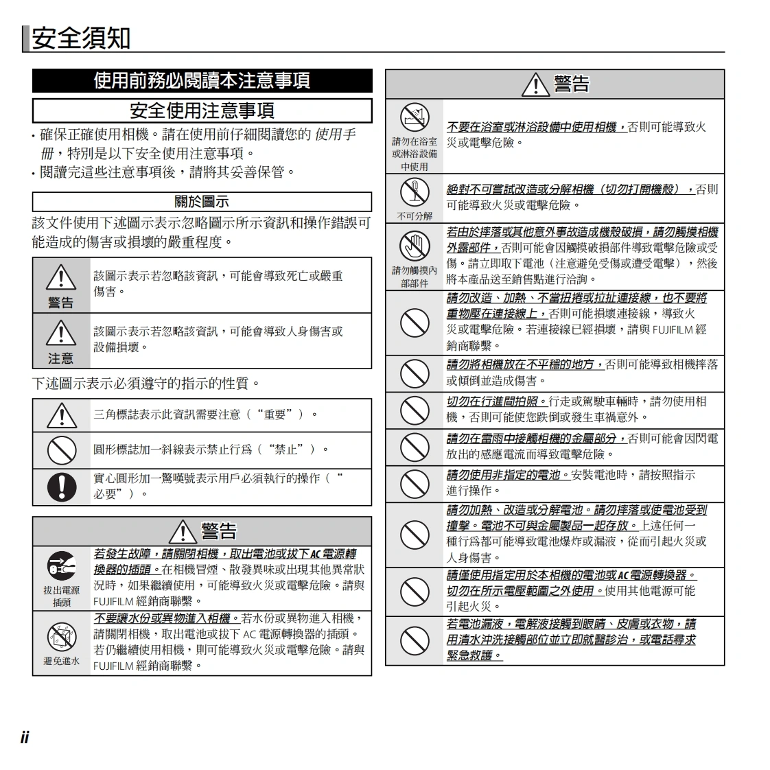 FUJ:FILMBL04011-100ZHTDIGITAL CAMERA準備XQ1第一步驟使用手冊基本攝影與瀏覽感謝您選購本產品。本手冊關於攝影的更多資訊將說明如何使用您的FUJIFILM數位相機及隨附的軟體。在關於瀏劉覽的更多資訊使用相機之前,請確定您已無線網路閱讀並理解了本手冊內容及“安全須知”(目ⅱ)中動畫的警告。相機連接有關相關產品的資訊,請參閱我們的網站選單http://www.fujifilm.com/products/digital_cameras/index.html技術支援故障排除附録Wi-Fi PROTECTED2WiFiSETUPCERTIFIEDPictBridgeExif PrintHomIHIGH-DEFINITION MULTIMEDIA INTERFACE