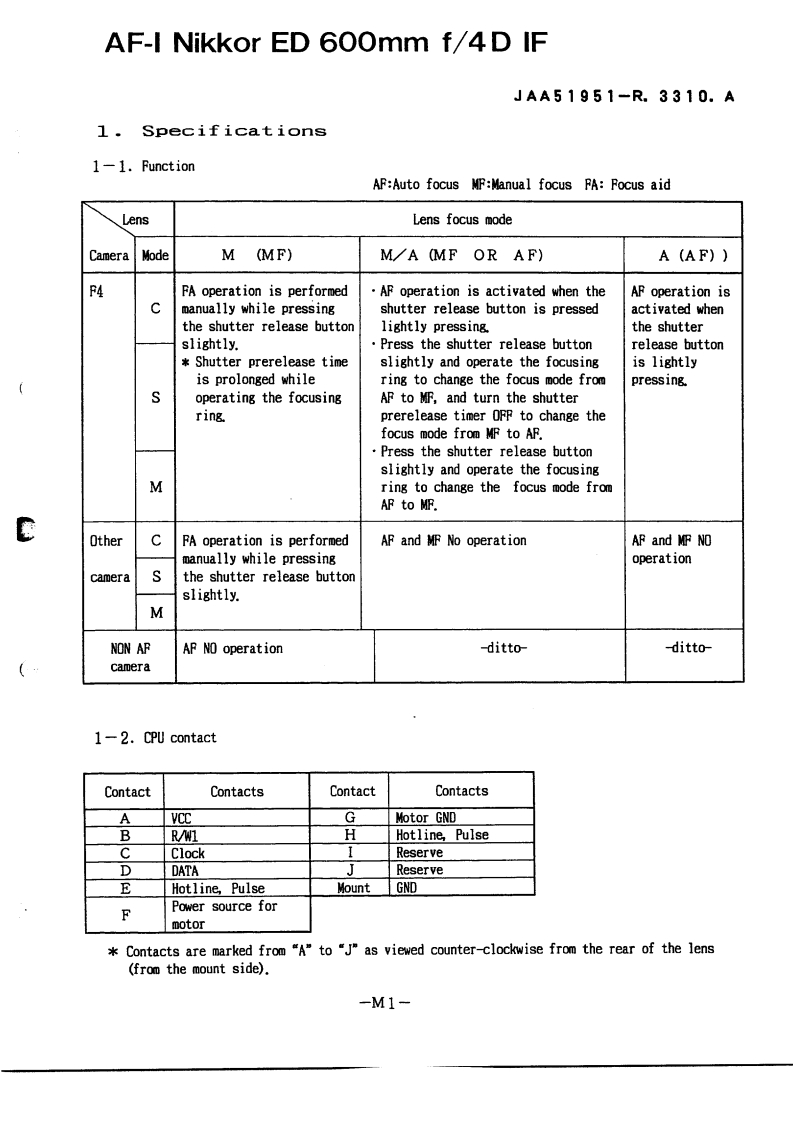 NIKON尼康数码相机AF-I-600mm-f4D维修手册零部件手册找手册网昨天发布关注私信4.53MB93页029NIKON尼康数码相机AF-I-600mm-f4D维修手册零部件手册此内容为付费资源,请付费后查看¥19¥21黄金会员免费钻石会员免费立即购买您当前未登录!建议登陆后购买,可保存购买订单付费资源 第1页 / 共93页 第2页 / 共93页 第3页 / 共93页 第4页 / 共93页 第5页 / 共93页 第6页 / 共93页 第7页 / 共93页 第8页 / 共93页 第9页 / 共93页 第10页 / 共93页 试读已结束,还剩83页,您可下载完整版后进行离线阅读 THE ENDNikon 文本预览 JAA51951-R.3310.AAF-I Nikkor ED 600mm f/4D IFREPAIR MANUALNikonNIKON CORPORATIONTokyo.Japan©Copyright1992ALL RIGHTS RESERVED無断标戴苍禁∥Printed in Japan July 1992 查看更多 收起部分 喜欢就支持一下吧收藏