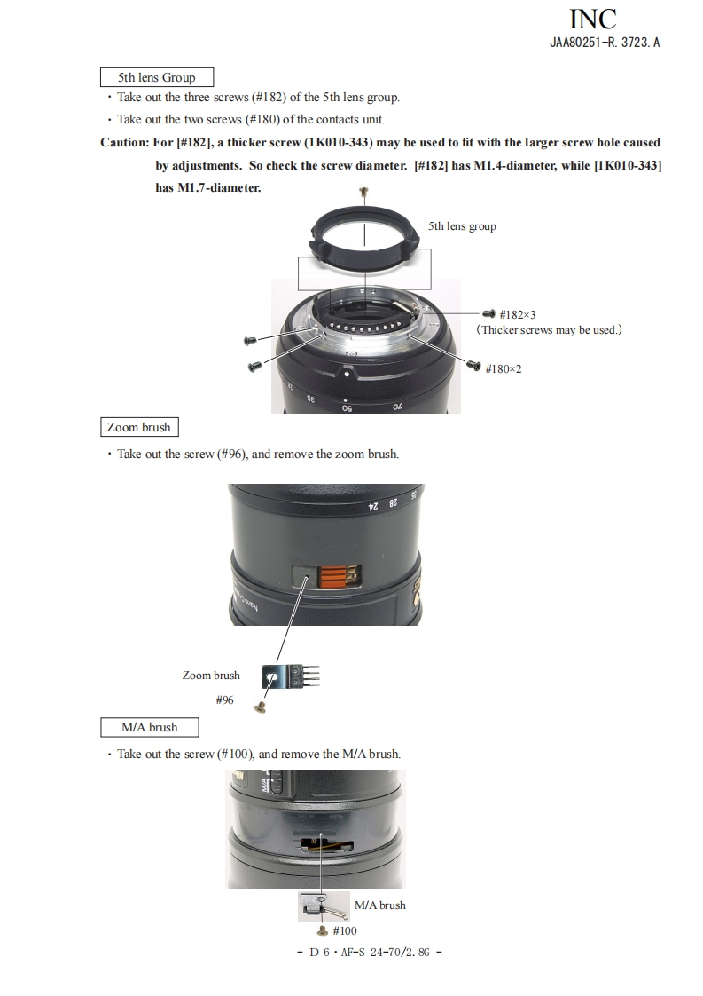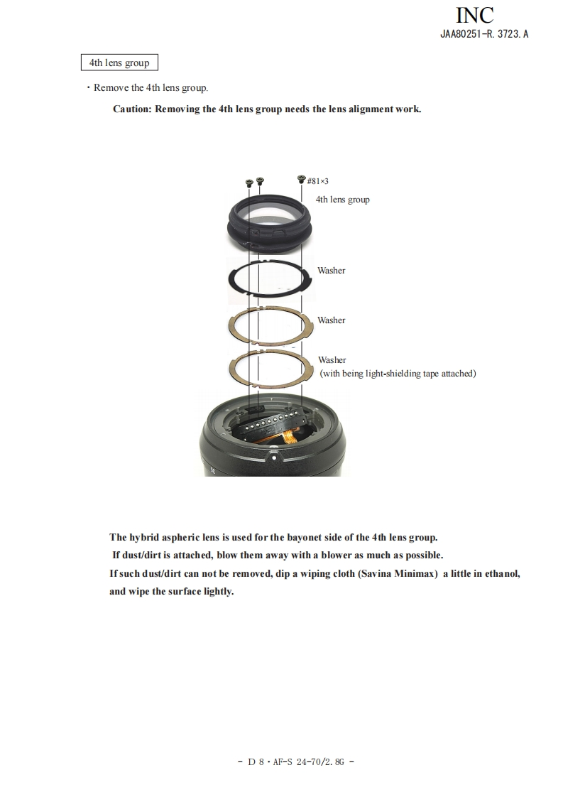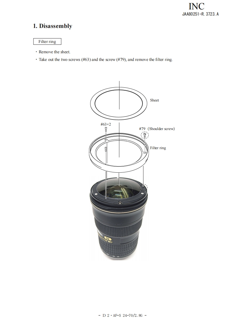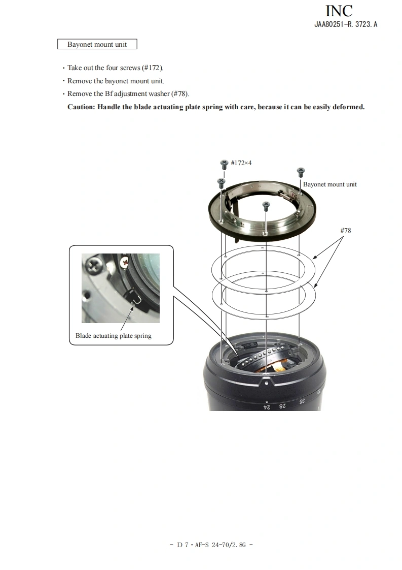 NIKON尼康数码相机AF-S-24-70mm-f2-8D-G维修手册零部件手册找手册网22小时前发布关注私信14.01MB97页026NIKON尼康数码相机AF-S-24-70mm-f2-8D-G维修手册零部件手册此内容为付费资源,请付费后查看¥19¥21黄金会员免费钻石会员免费立即购买您当前未登录!建议登陆后购买,可保存购买订单付费资源 第1页 / 共97页 第2页 / 共97页 第3页 / 共97页 第4页 / 共97页 第5页 / 共97页 第6页 / 共97页 第7页 / 共97页 第8页 / 共97页 第9页 / 共97页 第10页 / 共97页 试读已结束,还剩87页,您可下载完整版后进行离线阅读 THE ENDNikon 文本预览 INCJAA80251-R.3723.A作成承認印配布許可印GMMAF-S Zoom-Nikkor ED24-70mm/F2.8G(1F)JAA80251REPAIR MANUALNONIKON CORPORATIONTokyo.JapanCopyright 2007 by Nikon Corporation.All Rights Reserved.無断転載左禁寸!Pr inted in Japan November 2007 查看更多 收起部分 喜欢就支持一下吧收藏