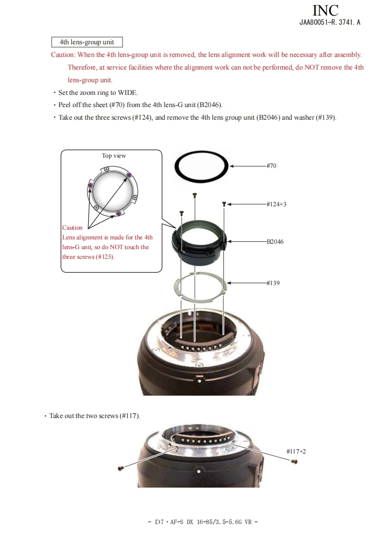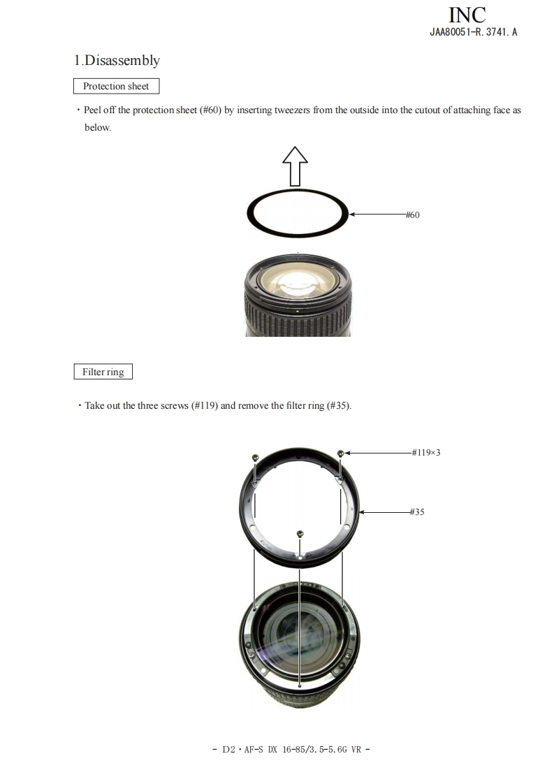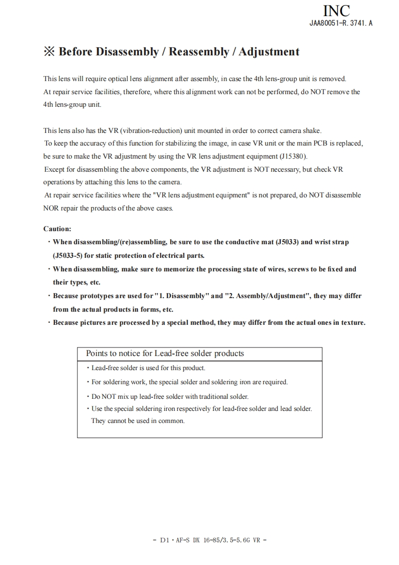 NIKON尼康数码相机AF-S-DX-16-85mm-f3-5-5-6D-G-VR维修手册零部件手册找手册网22小时前发布关注私信11.30MB144页048NIKON尼康数码相机AF-S-DX-16-85mm-f3-5-5-6D-G-VR维修手册零部件手册此内容为付费资源,请付费后查看¥19¥21黄金会员免费钻石会员免费立即购买您当前未登录!建议登陆后购买,可保存购买订单付费资源 第1页 / 共144页 第2页 / 共144页 第3页 / 共144页 第4页 / 共144页 第5页 / 共144页 第6页 / 共144页 第7页 / 共144页 第8页 / 共144页 第9页 / 共144页 第10页 / 共144页 试读已结束,还剩134页,您可下载完整版后进行离线阅读 THE ENDNikon 文本预览 INCJAA80051-R.3741.A作成承認印配布許可印GMMAF-S DX Nikkor16-85mmf/3.5-5.6 G ED VRJAA80051REPAIR MANUALONIKON CORPORATIONTokyo.JapanCopyright 2008 by Nikon Corporation.AlI Rights Reserved.無断酝載左禁寸!Pr inted in Japan February 2008 查看更多 收起部分 喜欢就支持一下吧收藏