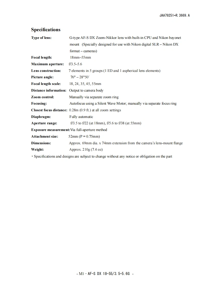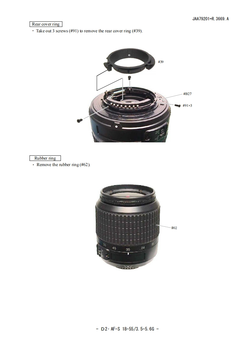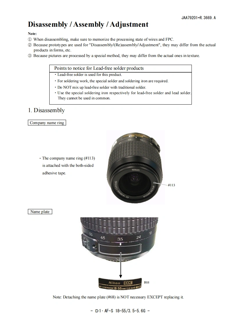 NIKON尼康数码相机AF-S-DX-18-55mm-f3-5-5-6D-G维修手册零部件手册找手册网22小时前发布关注私信7.35MB65页026NIKON尼康数码相机AF-S-DX-18-55mm-f3-5-5-6D-G维修手册零部件手册此内容为付费资源,请付费后查看¥19¥21黄金会员免费钻石会员免费立即购买您当前未登录!建议登陆后购买,可保存购买订单付费资源 第1页 / 共65页 第2页 / 共65页 第3页 / 共65页 第4页 / 共65页 第5页 / 共65页 第6页 / 共65页 第7页 / 共65页 第8页 / 共65页 第9页 / 共65页 第10页 / 共65页 试读已结束,还剩55页,您可下载完整版后进行离线阅读 THE ENDNikon 文本预览 JAA79201-R3669.A作成承認印配布許可印計面課GM④MAF-S DX Nikkor ED18-55/3.5-5.6GJAA79201SilverJAA79251BlackREPAIR MANUALNKO NIKON CORPORATIONTokyo,JapanCopyr igh 2005 by Nikon Corporation.All Rights Reserved無断耘載左禁寸!Printed in Japan May 2005 查看更多 收起部分 喜欢就支持一下吧收藏