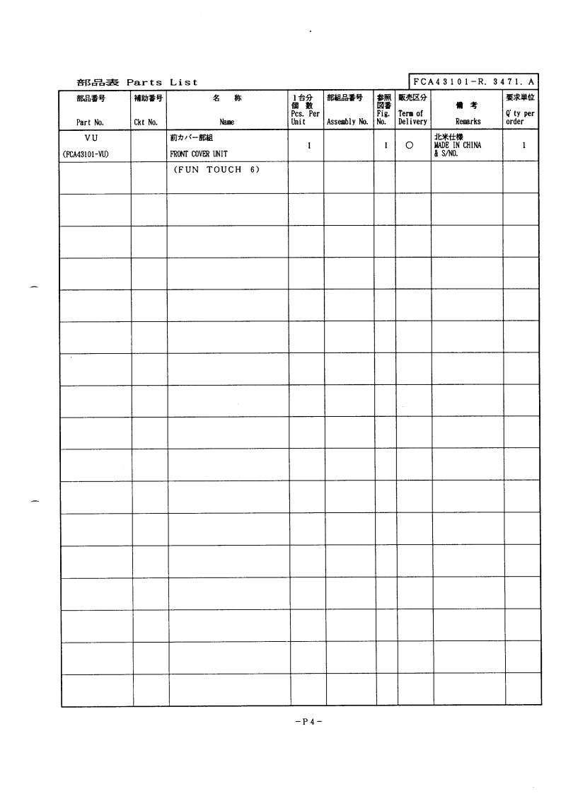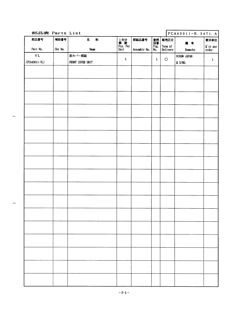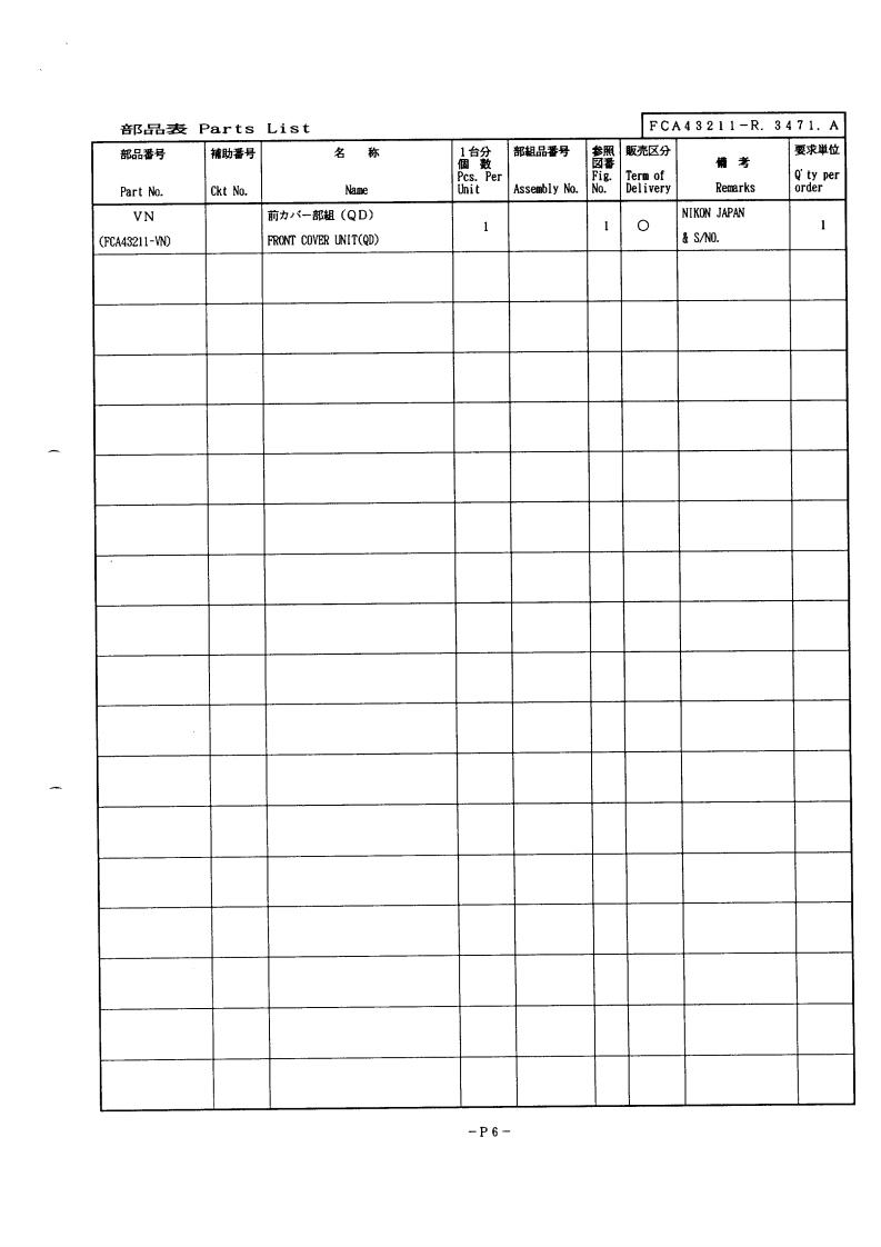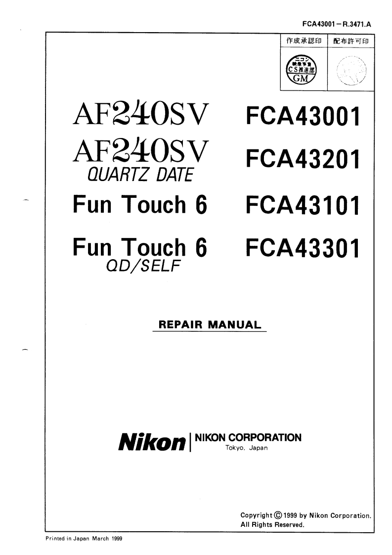 FCA43001-R.3471.A作成承認印配布許可印CS推谁部GMAFR40SVFCA43001AFR40SVFCA43201QUARTZ DATEFun Touch 6FCA43101Fun Touch 6FCA43301QD/SELFPARTS LIST修理部品表NKONIKON CORPORATIONTokyo.JapanCopyrightC1999 by Nikon Corporation.All Rights Reserved.無断耘载苍禁式∥Printed in Japan March 1999