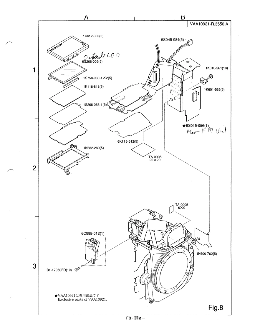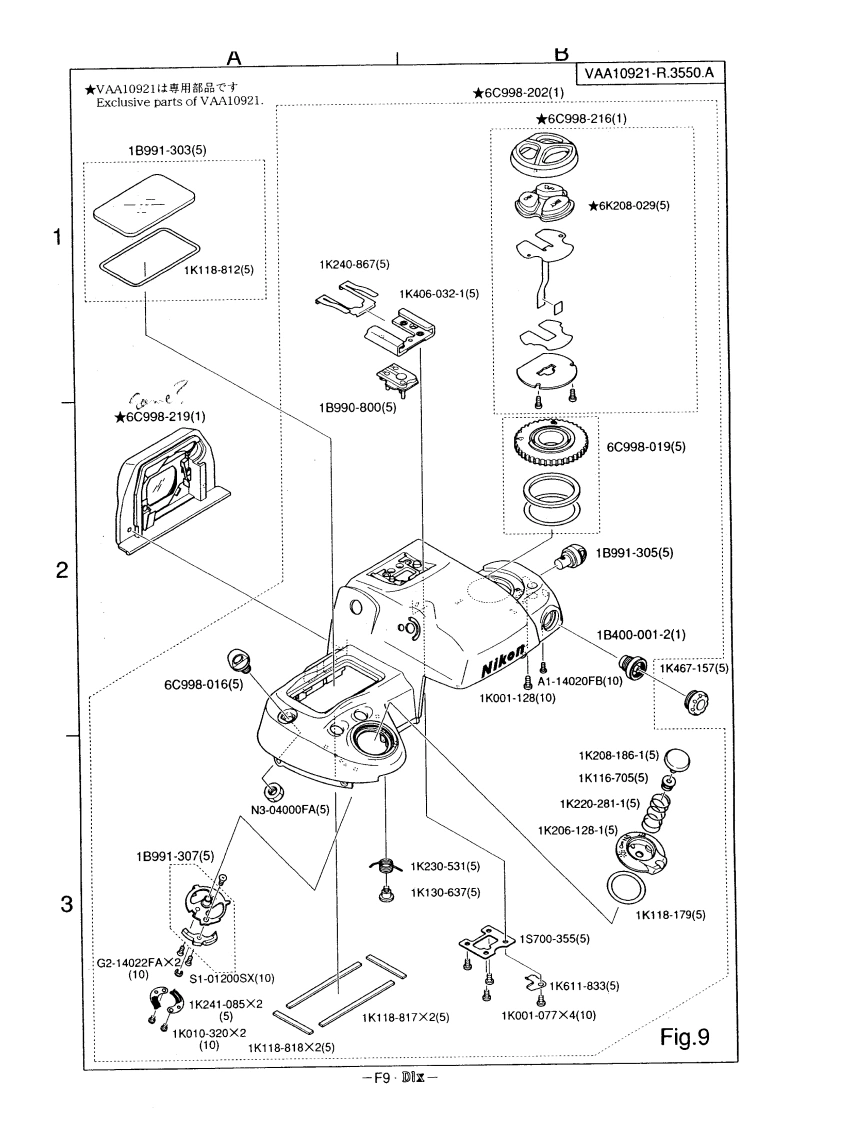 VAA10921-R.3550.A作成承認印配布許可印分一ビ天計画謅GMMDIxVAA10921(JAPAN/NTSC)VAA10922(USA/EN/NTSC)VAA10923(EP/PAL)PARTS LIST修理部品表Nikon NIKNIKON CORPORATIONTokyo,JapanCopyrightC2001 by Nikon Corporation.Recycled paperAll Rights Reserved.再生纸苍使用儿TL宋寸無断酝截态禁寸μPrinted in Japan April 2001