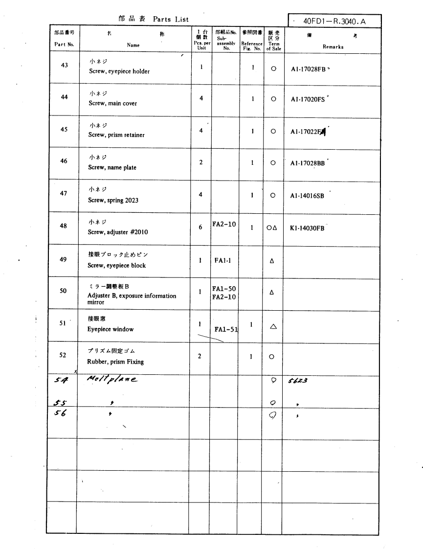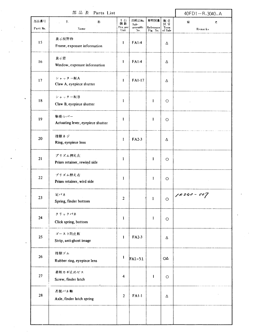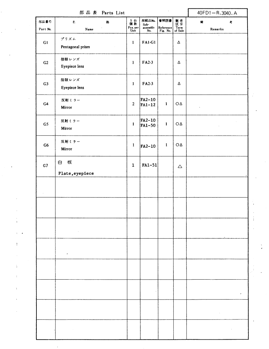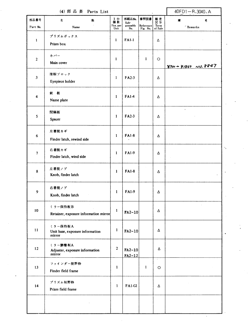 NIKON尼康数码相机F3-Finder维修手册零部件手册找手册网22小时前发布关注私信2.41MB77页032NIKON尼康数码相机F3-Finder维修手册零部件手册此内容为付费资源,请付费后查看¥19¥21黄金会员免费钻石会员免费立即购买您当前未登录!建议登陆后购买,可保存购买订单付费资源 第1页 / 共77页 第2页 / 共77页 第3页 / 共77页 第4页 / 共77页 第5页 / 共77页 第6页 / 共77页 第7页 / 共77页 第8页 / 共77页 第9页 / 共77页 第10页 / 共77页 试读已结束,还剩67页,您可下载完整版后进行离线阅读 THE ENDNikon 文本预览 Viewfinder For Nikon F3DE-2 Standard finder40FD1DE-3 High eyepoint finderFAB01601DW-4 6x High magnificationFAB01301DW-3 Waist-level finderFAB01201DA-2 Action finderFAB01401REPAIR MANUAL 查看更多 收起部分 喜欢就支持一下吧收藏