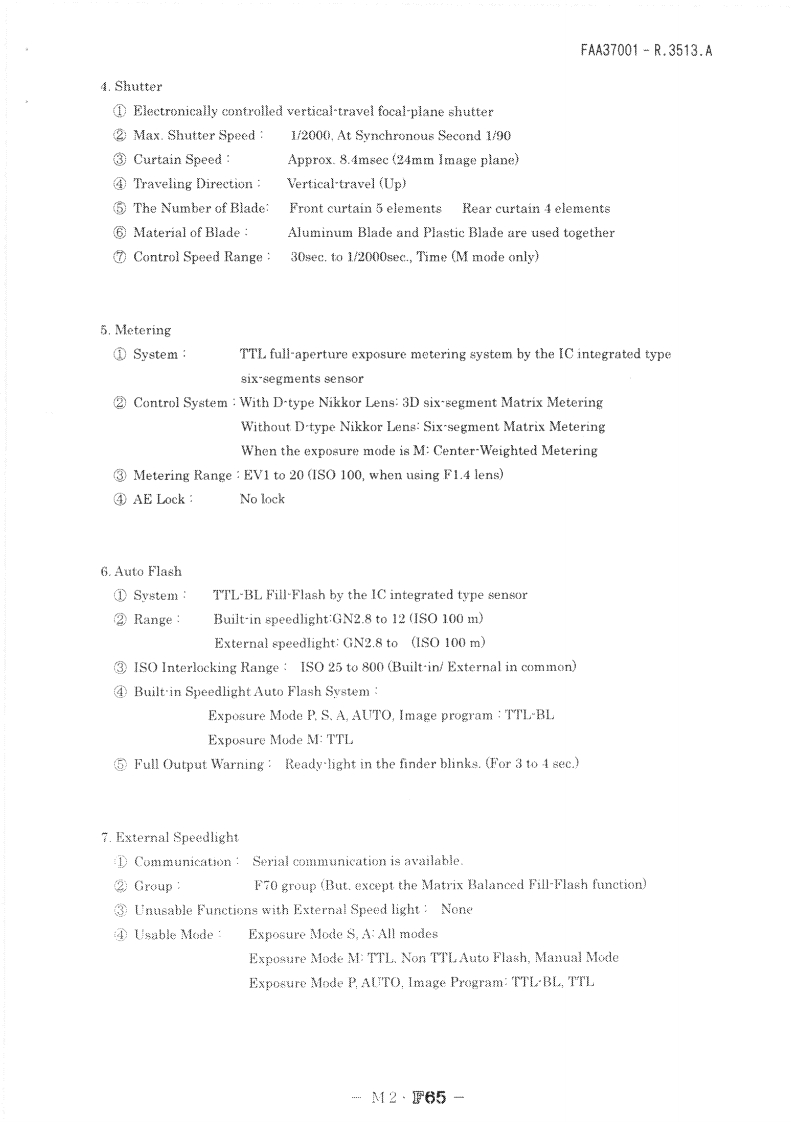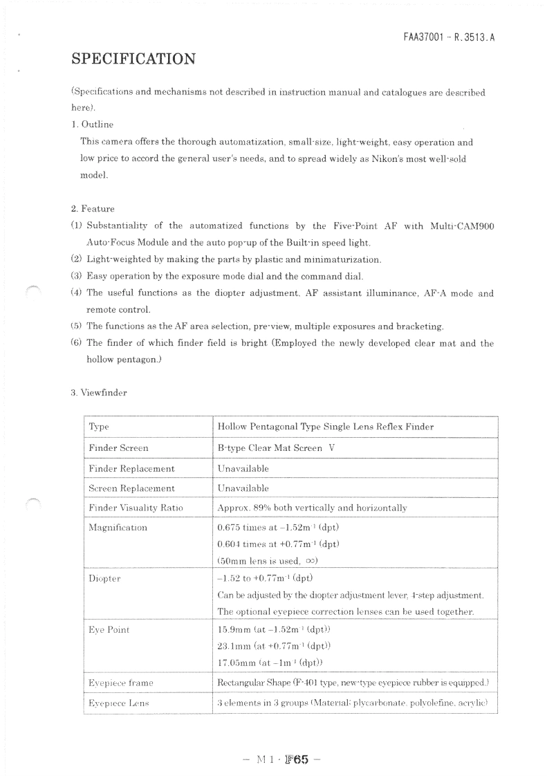 FAA37001-R.3513.A作成承配印配布許可印CS撰邂GMF65(SILVER)FAA37001(BLACK)FAA37051Λ65(SILVER)FAA37101L(SILVER)FAA37201(BLACK)FAA37251F65D(SILVER)FAA37211(BLACK)FAA37261N650D(BLACK)FAA37351REPAIR MANUALNiKO NIKON CORPORATIONTokyo.JapanCopyright 2000 by Nikon CorporationAll Rights Reserved.無衡酝板在禁岁·