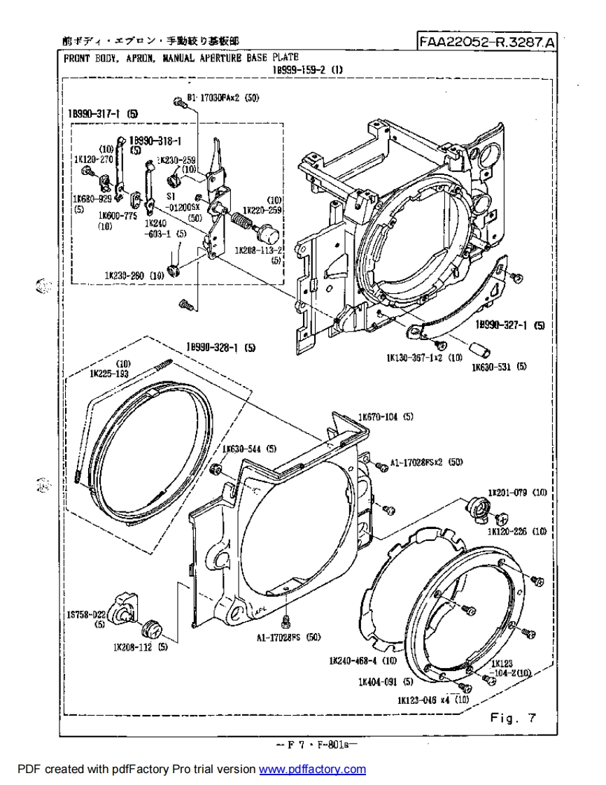 ABF801之女y夕一部FAA22051-R.3241.BF801 Shutter1旧中7夕一相品新中y少“幂1B999.674密双付材各好比情仍迅显花匣用才石二上婴提94F-1033F801F90-9400841B999-148-2When mounting the new curtain (18999-674)on theb出hutter ss扫mby.usa the parts2 rked with*普N6.94F-1033小F001.F00-94008418999-67421K999-15131K999-I50包夕Fig.OAdded page(迫)-F0·F807S8P.5.1095tPDF created with pdfFactory Pro trial version www.pdffactory.com