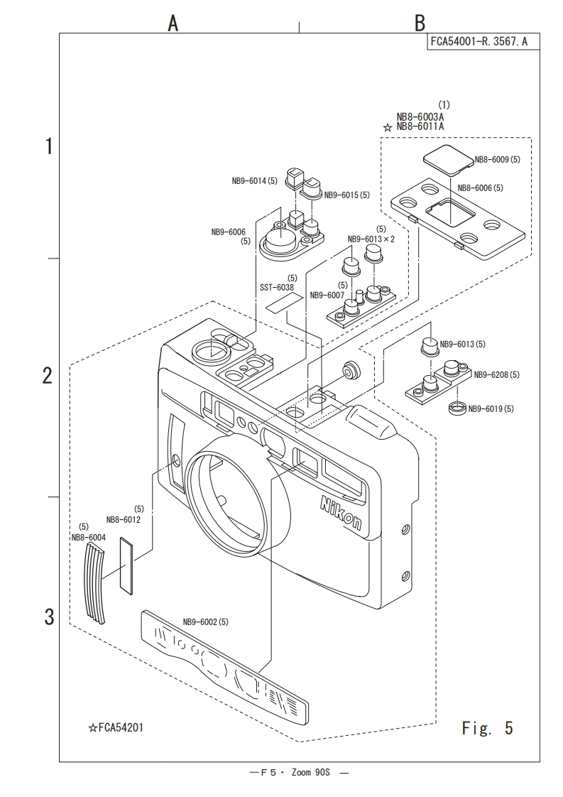 FCA54001-R3567.A作成承認印配布許可印計面课GMMOne TouchFCA54001Zoom 90sAFOne TouchFCA54201Zoom 90s△QUARTZ DATEPARTS LIST修理部品表KO NIKON CORPORATIONTokyo,JapanCopyright 2002 by Nikon Corporation.All Rights Reserved.無断転截在禁于!!Printed in Japan March 2002