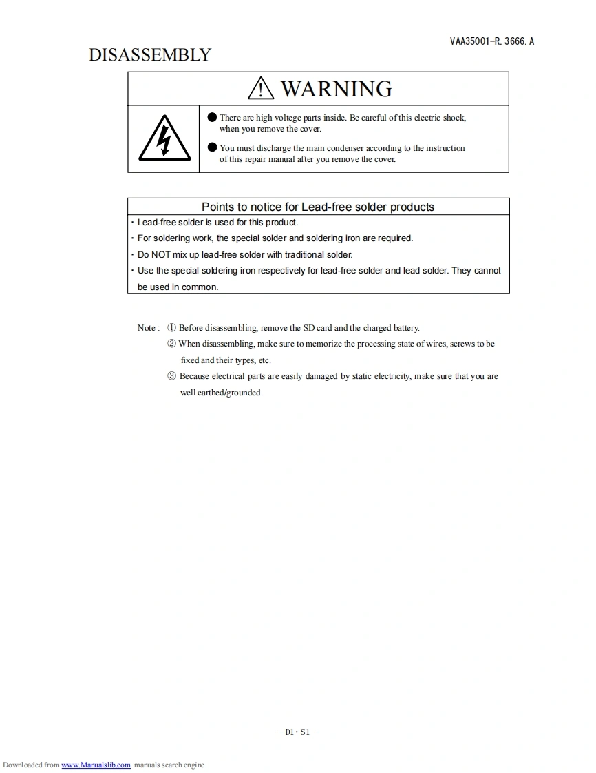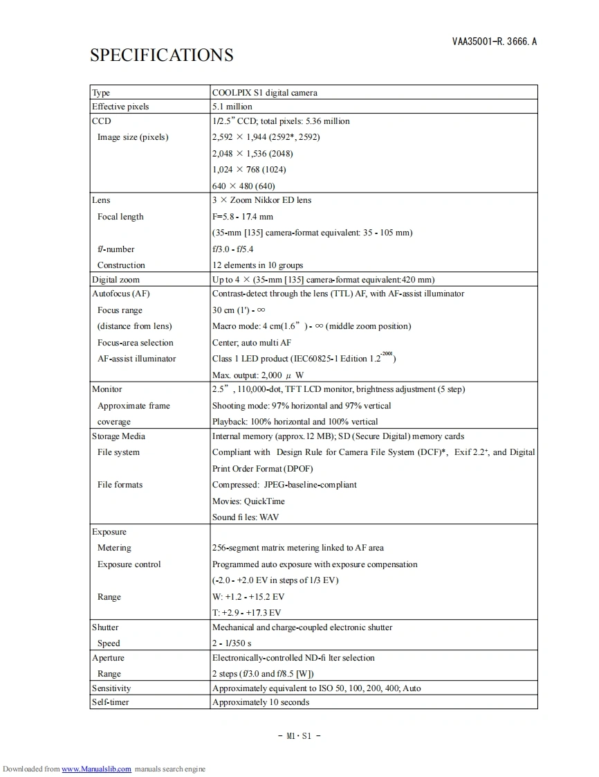 VAA35001-R3666.A作成承認印配布許可印計課GMMNikonCOOLPIX SVAA35001REPAIR MANUALNKONIKON CORPORATIONTokyo.JapanCopyr ight 2005 by Nikon Corporation.All Rights Reserved.無断転載左禁寸!Printed in Japan April 2005Downloaded from www.Manualslib.com manuals search engine
