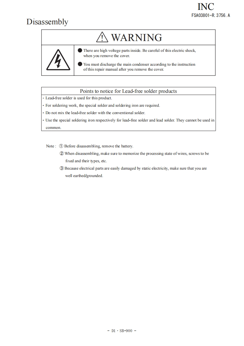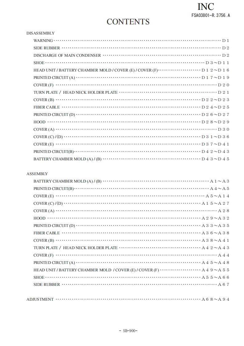 NIKON尼康数码相机SB-900维修手册零部件手册找手册网19小时前发布关注私信14.39MB147页028NIKON尼康数码相机SB-900维修手册零部件手册此内容为付费资源,请付费后查看¥19¥21黄金会员免费钻石会员免费立即购买您当前未登录!建议登陆后购买,可保存购买订单付费资源 第1页 / 共147页 第2页 / 共147页 第3页 / 共147页 第4页 / 共147页 第5页 / 共147页 第6页 / 共147页 第7页 / 共147页 第8页 / 共147页 第9页 / 共147页 第10页 / 共147页 试读已结束,还剩137页,您可下载完整版后进行离线阅读 THE ENDNikon 文本预览 INCFSA03801-R.3756.A作成承認印配布許可印計課GMSB-900FSA03801REPAIR MANUALNikonNIKON CORPORATIONTokyo.JapanCopyrigh 2008 by Nikon Corporation.AlI Rights Reserved.無断転載左禁寸!Pr inted in Japan July 2008 查看更多 收起部分 喜欢就支持一下吧收藏
