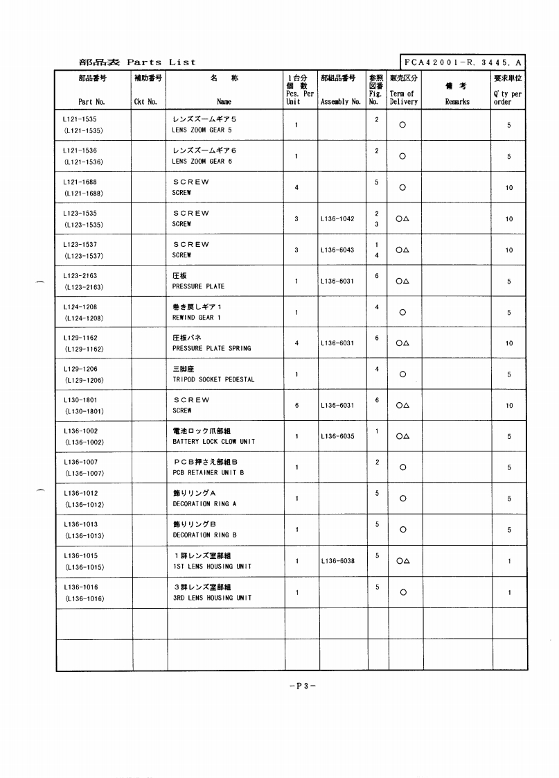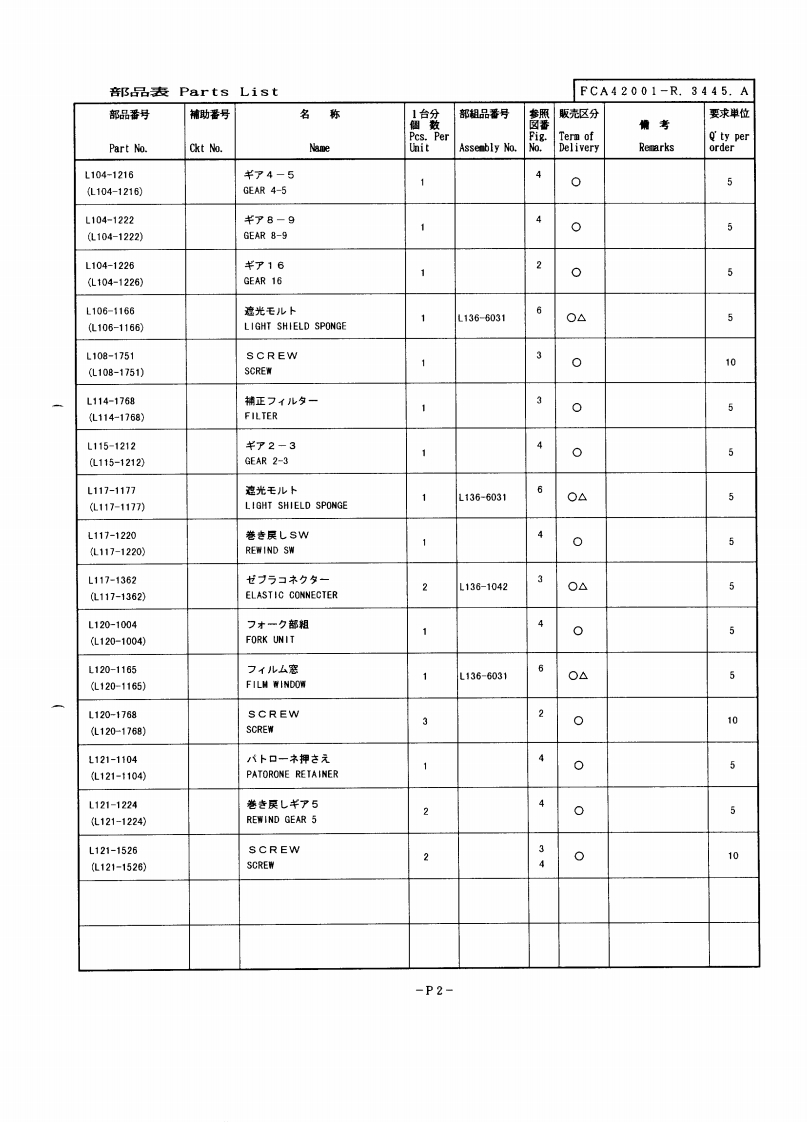 NIKON尼康数码相机Zoom-800维修手册零部件手册找手册网21小时前发布关注私信6.26MB82页039NIKON尼康数码相机Zoom-800维修手册零部件手册此内容为付费资源,请付费后查看¥19¥21黄金会员免费钻石会员免费立即购买您当前未登录!建议登陆后购买,可保存购买订单付费资源 第1页 / 共82页 第2页 / 共82页 第3页 / 共82页 第4页 / 共82页 第5页 / 共82页 第6页 / 共82页 第7页 / 共82页 第8页 / 共82页 第9页 / 共82页 第10页 / 共82页 试读已结束,还剩72页,您可下载完整版后进行离线阅读 THE ENDNikon 文本预览 FCA42001-R.3445.A作成承認印配布許可印-GMNikon I①M8①FCA42001Nikon 1①M8①QDFCA42201PARTS LIST修理部品表NikonNIKON CORPORATIONTokyo,JapanCopyright C1998 by Nikon Corporation.All Rights Reserved.無断酝靓态禁寸!Printed in Japan May 1998 查看更多 收起部分 喜欢就支持一下吧收藏