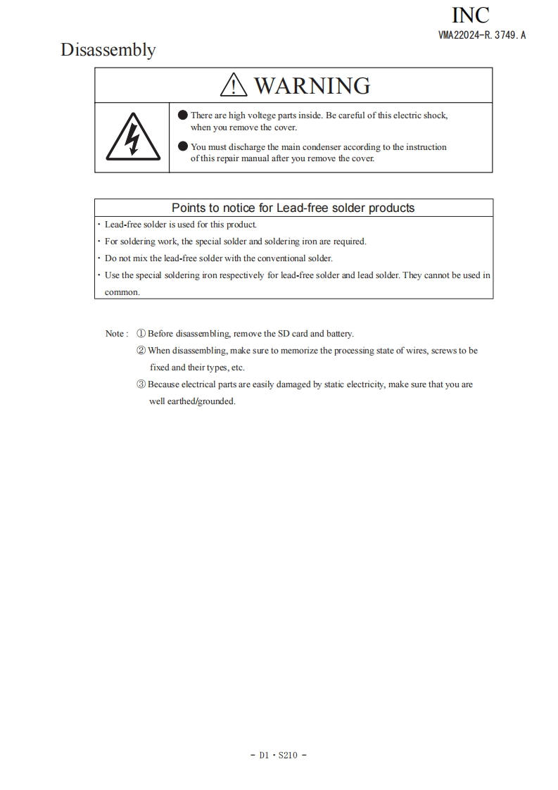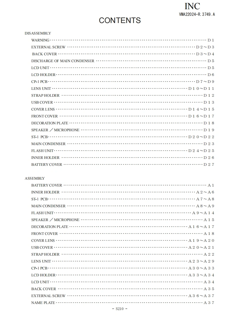 尼康COOLPIX-s210数码相机维修手册找手册网19小时前发布关注私信11.89MB114页042尼康COOLPIX-s210数码相机维修手册此内容为付费资源,请付费后查看¥19¥21黄金会员免费钻石会员免费立即购买您当前未登录!建议登陆后购买,可保存购买订单付费资源 第1页 / 共114页 第2页 / 共114页 第3页 / 共114页 第4页 / 共114页 第5页 / 共114页 第6页 / 共114页 第7页 / 共114页 第8页 / 共114页 第9页 / 共114页 第10页 / 共114页 试读已结束,还剩104页,您可下载完整版后进行离线阅读 THE ENDNikon 文本预览 INCVAM22024-R3749.A作成承認印配布許可印GMMCO○LPXS21OVMA22024REPAIR MANUALONIKON CORPORATIONTokyo.JapanCopyrigh 2008 by Nikon Corporation.AlI Rights Reserved.無断転載左禁寸!Printed in Japan FEB 2008 查看更多 收起部分 喜欢就支持一下吧收藏