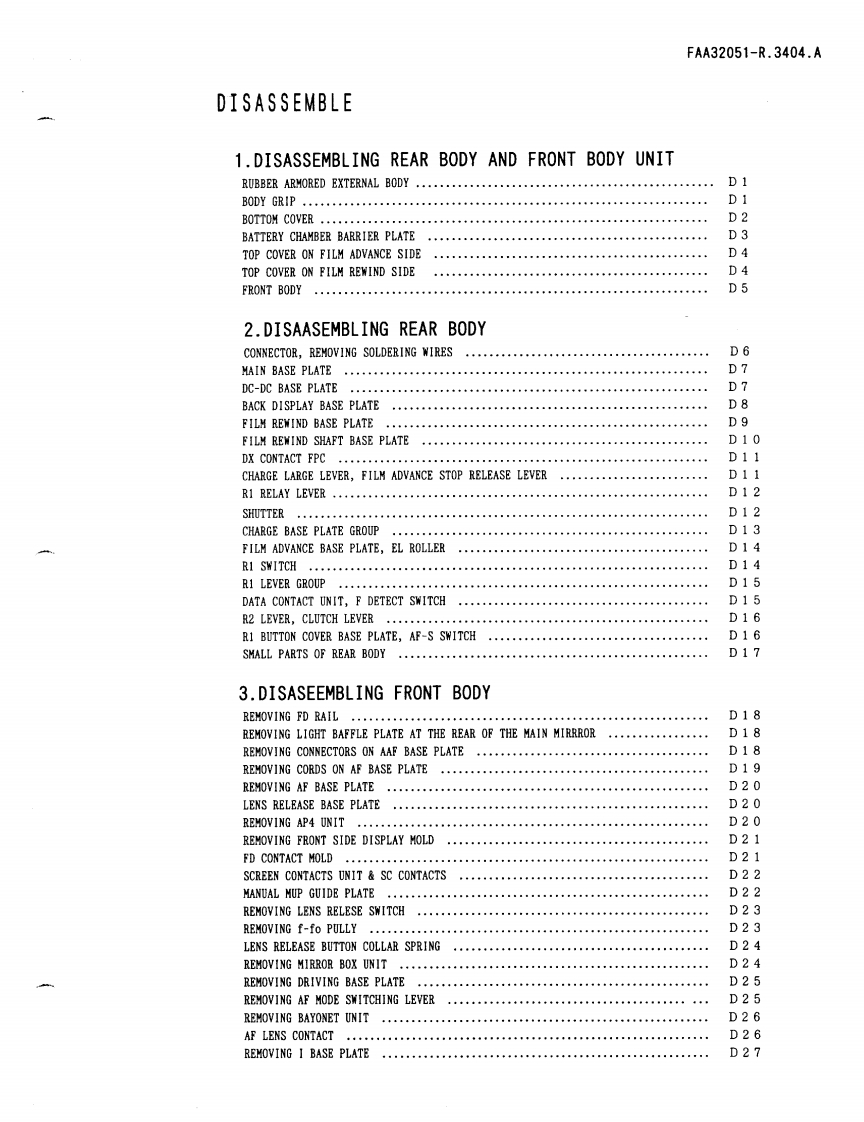 尼康F5数码相机维修图纸手册找手册网19小时前发布关注私信10.21MB124页029尼康F5数码相机维修图纸手册此内容为付费资源,请付费后查看¥19¥21黄金会员免费钻石会员免费立即购买您当前未登录!建议登陆后购买,可保存购买订单付费资源 第1页 / 共124页 第2页 / 共124页 第3页 / 共124页 第4页 / 共124页 第5页 / 共124页 第6页 / 共124页 第7页 / 共124页 第8页 / 共124页 第9页 / 共124页 第10页 / 共124页 试读已结束,还剩114页,您可下载完整版后进行离线阅读 THE ENDNikon 文本预览 FAA32051-R.3404.A作成承認印配布許可印针画果GMINikon写REPAIR MANUALNikonNIKON CORPORATIONTokyo.JapanCopyrightC1996 by Nikon Corporation.All Rights Reserved.Printed in Japan June 1996 查看更多 收起部分 喜欢就支持一下吧收藏