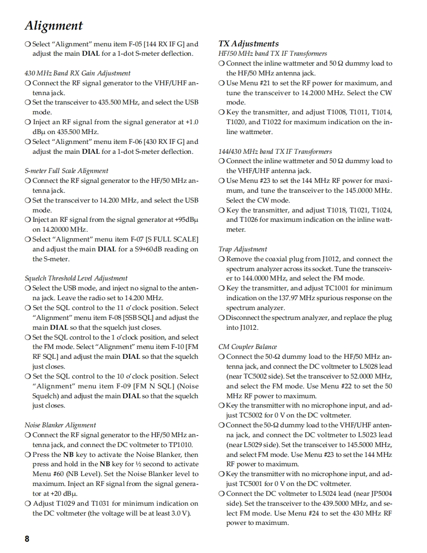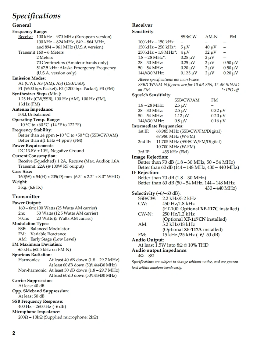 HF V/UHF BandVERTEX STANDARD CO.,LTD.4-8-8 Nakameguro,Meguro-Ku,Tokyo 153-8644,JapanAll Mode Mobile TransceiverVERTEX STANDARD10900 Walker Street,Cypress,CA9063.U.S.AFT-100/-100DYAESU EUROPE B.V.P.O.Box 75525,1118 ZN Schiphol,The NetherlandsYAESU UK LTD.Technical SupplementUnit 12,Sun Valley Business Park,Winnall CloseWinchester,Hampshire,S023 OLB,U.K.VERTEX STANDARD HK LTD.Unit 5.20/F.,Seavew Centre,139-141 Hoi Bun Road,@2003 VERTEX STANDARD CO.,LTD.E089890AKwun Tong,Kowloon,Hong KongIntroductionThis manual provides technical information necessaryfor servicing the Yaesu FT-100/-100D HF V/UHF-BandTransceiver.It does not include information on installa-tion and operation,which are described in the FT-100/-100D Operating Manual provided with the transceiver,or on accessories which are described in their manuals.The FT-100/-100D is carefully designed to allow theknowledgeable operator to make nearly all adjustmentsrequired for various station conditions,modes and oper-ator preferences simply from the controls on the panels,without opening the case of the transceiver.The FT-100/-nents(trimmers,coils,electrolytic capacitors,packaged100D Operating Manual describes these adjustments,plusICs,etc.),or lead components only.certain internal settings.While we believe the technical information in this man-Servicing this equipment requires expertise in handlingual is correct,VERTEX STANDARD assumes no liabilitysurface mount chip components.Attempts by unqualifiedfor damage that may occur as a result of typographical orpersons to service this equipment may result in perma-other errors that may be present.Your cooperation innent damage not covered by warranty.For the major cir-pointing out any inconsistencies in the technical informa-cuit boards,each side of the board is identified by the typetion would be appreciated.VERTEX STANDARD reservesof the majority of components installed on that side.Inthe right to make changes in this transceiver and the align-most cases one side has only chip components,and thement procedures,in the interest of technological improve-other has either a mixture of both chip and lead compo-ment,without notification of owners.ContentsSpecification……2LOCAL Unit.…….63Exploded View Miscellaneous Parts.....3REF Unit5Alignment.…5PA Unit.44444444.T7LPE Unit.Block Diagram.17.89DISPLAY Unit.99Interconnection Diagram..............18CNTL Unit.........107Board Unit(Schematics,Layouts Parts)CONNECT-1 Unit117MAIN Unit..19VR Unit.1186m-FILTER Unit.........…49CONNECT-2 Unit.119BP℉Unit510pti0n.120HPF Unit..........55TCXO-8.120AUDIO-FILTER Unit.....59FTS-27.121