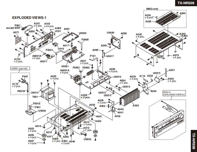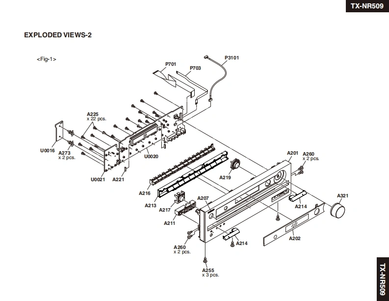 TX-NR509Ref.No.4259OT¥ZO.SERVICE MANUAL032011/062011AV RECEIVERMODEL TX-NR509(B)/(S)North Ame fcan and Taiwan models->"MUSIC OPTIMIZER"North Amercan and Taiwan modeis->'DIMMER"Euopean,Australian and Asian models->"PURE AUDIO"European,Austmalian and Asian modeis-'RT/TPY/TPONKYO⊙oooiooo@⑨⊙曰⊙TX-NR509 Black and silver modelsRC-801MB MDD,B MDC,B MDF120V AC,60HzB MMK,B MMQ,B MMR220-240VAC,50/60HzB MPP.B MPB,B MPA,S MPP230V AC,50HzTX-NR509 for HT-S6405 Black modelB MPP230V AC.50HzTX-NR509 for AVX-690 Black modelB MPP,B MPB 230V AC,50HzSAFETY-RELATED COMPONENT WARNING!!COMPONENTS IDENTIFIED BY MARK ON THE SCHEMATIC DIAGRAM ANDIN THE PARTS LISTARE CRITICAL FOR RISK OF FIRE AND ELECTRIC SHOCK.REPLACE THESE COMPONENTS WITH ONKYO PARTS WHOSE PART NUMBERSAPPEAR AS SHOWN IN THIS MANUAL.MAKE LEAKAGE-CURRENT OR RESISTANCE MEASUREMENTS TO DETERMINETHAT EXPOSED PARTSAREACCEPTABLY INSULATED FROM THE SUPPLYCIRCUIT BEFORE RETURNING THE APPLIANCE TO THE CUSTOMER.ONKYO SOUND VISION CORPORATIONService Department