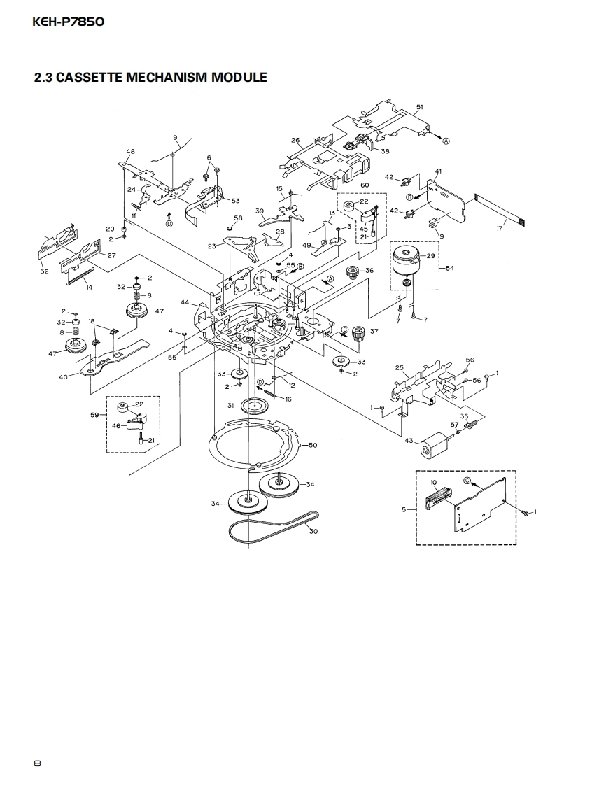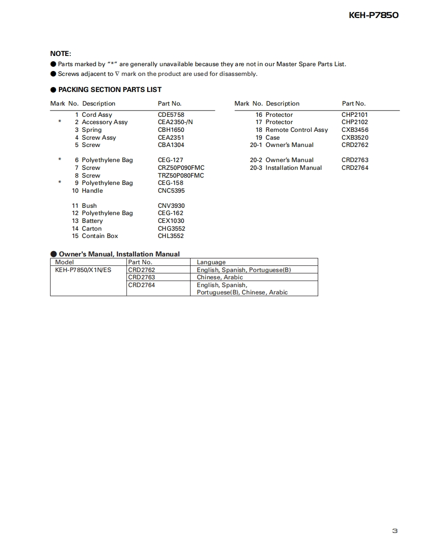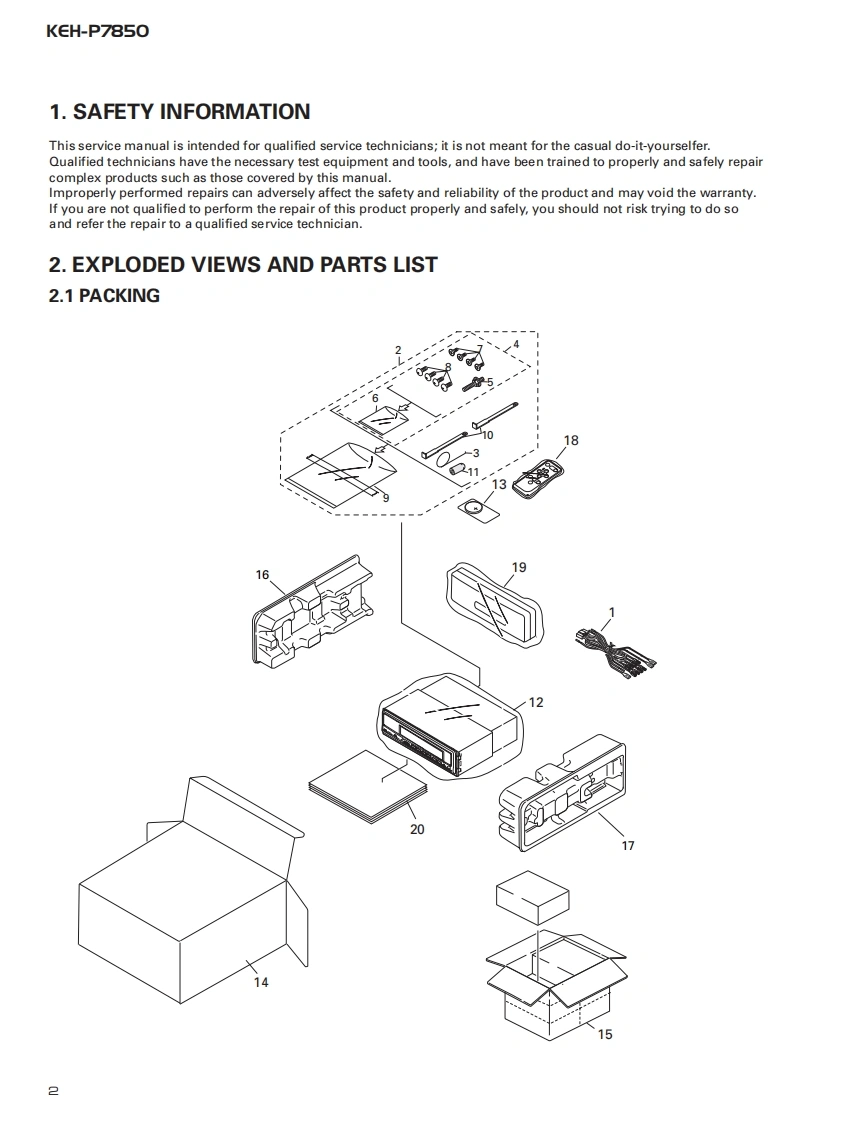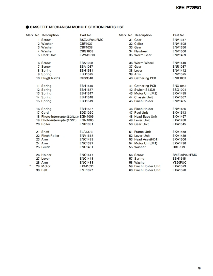 ServiceManualORDER NO.百口四000000回mICRT2307MULTI-CD CONTROL HIGH POWER CASSETTE PLAYER WITH FM/AM TUNERKEH-P7850X1N/ESNOTE:See the separate manual CX-631(CRT1640)for the cassette mechanism description.O The cassette mechanism assy employed in this model is one of 2L series.Dolby noise reduction manufactured under license from Dolby Laboratories Licensing Corporation."Dolby"and the double-D symbol are trademarks of Dolby Laboratories Licensing Corporation.CONTENTS1.SAFETY INFORMATION......7.GENERAL INFORMATION.382.EXPLODED VIEWS AND PARTS LIST...........7.1PARTS383.SCHEMATIC DIAGRAM.107.1.11C384.PCB CONNECTION DIAGRAM....207.1.2 DISPLAY.435.ELECTRICAL PARTS LIST.....307.2 DIAGNOSIS............446.ADJUSTMENT......367.2.1 DISASSEMBLY..447.2.2 TEST MODE457.3BLOCK DIAGRAM..488.OPERATIONS AND SPECIFICATIONS............49PIONEER ELECTRONIC CORPORATION 4-1,Meguro 1-Chome,Meguro-ku,Tokyo 153-8654,JapanPIONEER ELECTRONICS SERVICE INC.P.O.Box 1760,Long Beach,CA 90801-1760 U.S.A.PIONEER ELECTRONIC [EUROPE]N.V.Haven 1087 Keetberglaan 1,9120 Melsele,BelgiumPIONEER ELECTRONICS ASIACENTRE PTE.LTD.253 Alexandra Road,#04-01,Singapore 159936C PIONEER ELECTRONIC CORPORATION 1998K-ZZS.NOV.1998 Printed in Japan