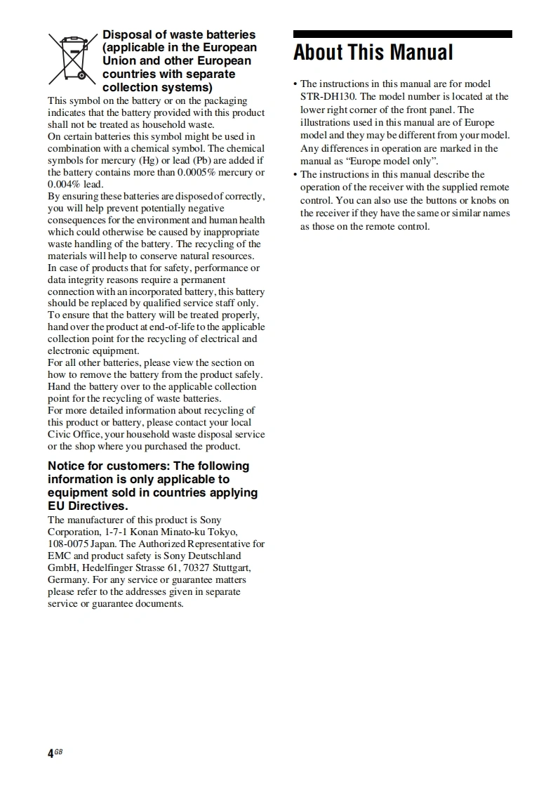 sony-str-dh130-操作说明书手册找手册网23天前发布关注私信1.76MB36页034sony-str-dh130-操作说明书手册此内容为付费资源,请付费后查看¥19¥21黄金会员免费钻石会员免费登录购买付费资源 第1页 / 共36页 第2页 / 共36页 第3页 / 共36页 第4页 / 共36页 第5页 / 共36页 第6页 / 共36页 第7页 / 共36页 第8页 / 共36页 第9页 / 共36页 第10页 / 共36页 试读已结束,还剩26页,您可下载完整版后进行离线阅读 THE END索尼 文本预览 SONY4-294-472-11(1)FM StereoFM/AM ReceiverOperating InstructionsSTR-DH130 查看更多 收起部分 喜欢就支持一下吧收藏