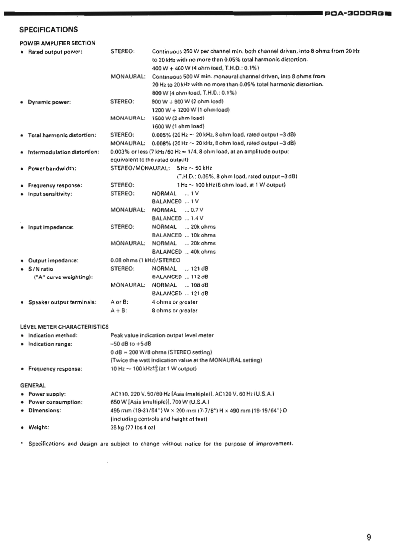 DENONStereo Power AmplifierSERVICEMANUALMODEL POA-3OOORGSTEREO POWER AMPLIFIERNOTE:This Service Manual is propared based on Asia Version.CONTENTSOPERATING INSTRUCTIONS.2-10REMOVALOF EACHSECTON...............................................11METHOD OF ADJUSTMENTS ..............................................12SEMIC0 NDUCTORS.…NOTE FOR PARTS LIST ...........…14PRINTED WIRING BOARD PARTS LIST.14-16PRINTED WIRING BOARD PATTERNSKU-9191 POWER AMP UNIT17KU-9192 INPUTUNIT ................................................8Ku-g193CONTROL UNIT...............................................9PAATS LIST OF EXPLODED VIEW............................................20EXPLODED VIEW OF CHASSIS AND CABINET .................................WIRING DIAGRAM ........................................................2SCHEMATIC DIAGRAM.232NIPPON COLUMBIA CO.LTD.