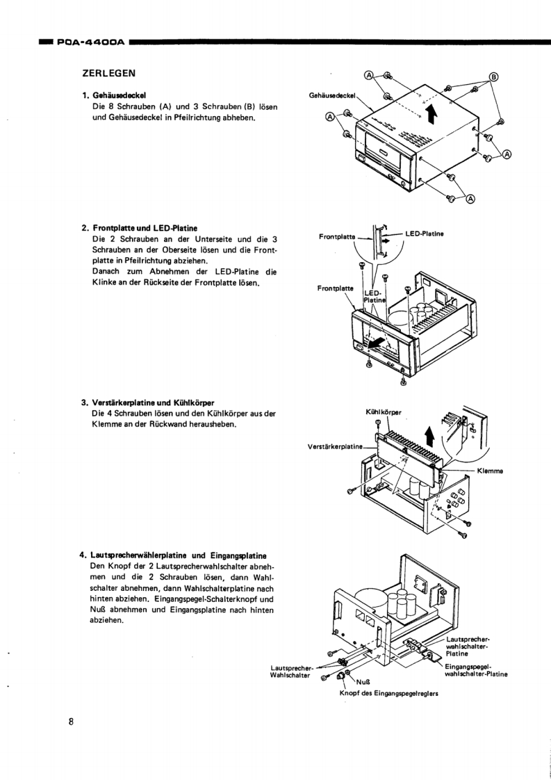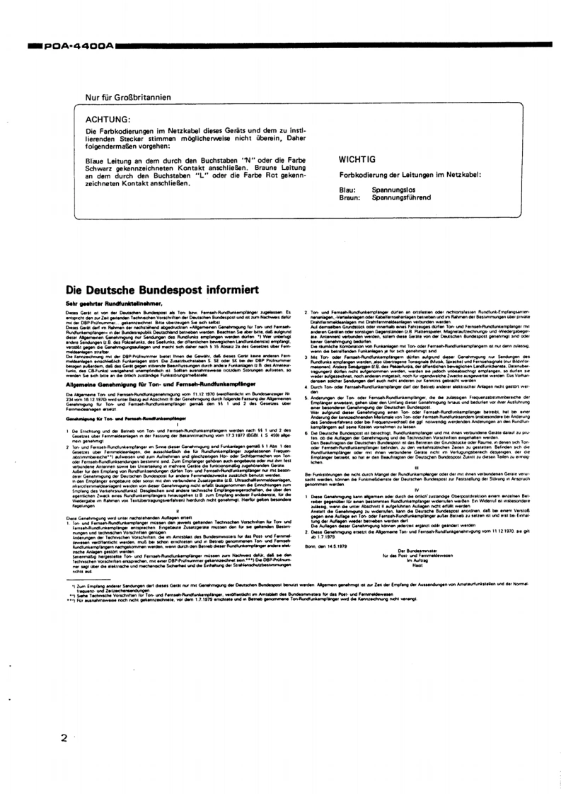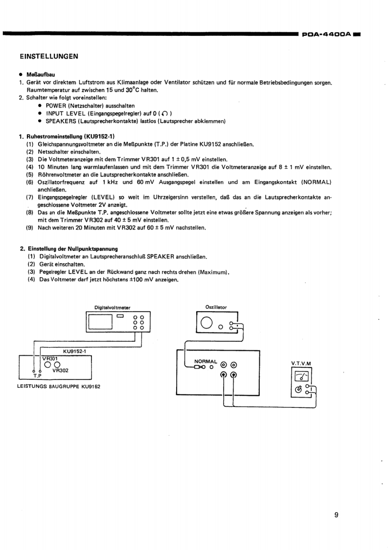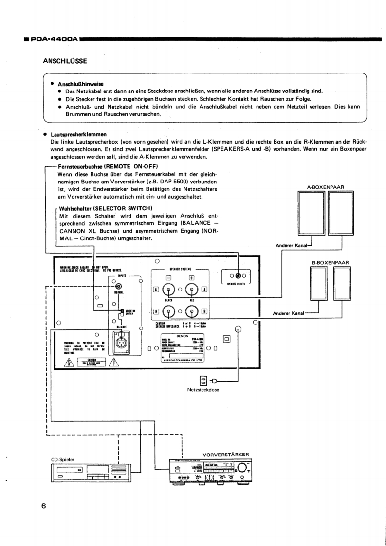DENONHi-Fi-Mono-VerstarkerWARTUNGSANLEITUNGTYPP▣A-44OOAMONO-VERSTARKERpelmmkDiese Wartungsanleitung basiert auf der EUROPA-Ausfuhrung,Schwarz.INHALTBEDIENUNGSANLEITUNG27ZE RLEGENEINSTELLUNGEN,……⊙STORUNGSSUCHE·,,,,········10BLOCKSCHALTBILD,……1HALBLEITER.···12,13TEILELISTE DE PLATINE ...........................................14,15PLATINEN..··16,17LEISTUNGS BAUGRUPPE KU9152LEISTUNGS BAUGRUPPE KU9155ANSCHLUSSPLAN18SCHALTPLANEXPLOSIONZEICHNUNG VON CHASSIS UND GEHAUSE UND TELELISTETEILELISTE,ANHANG........................................................9201NIPPON COLUMBIA CO.,LTD.