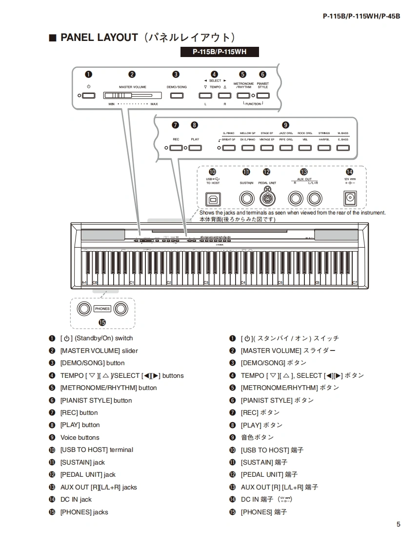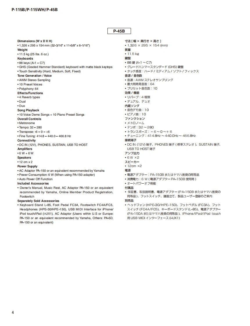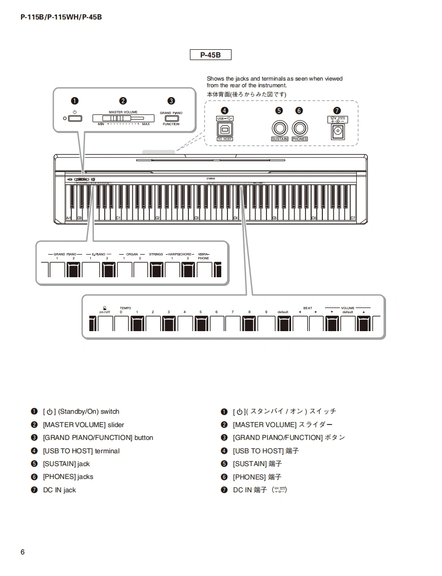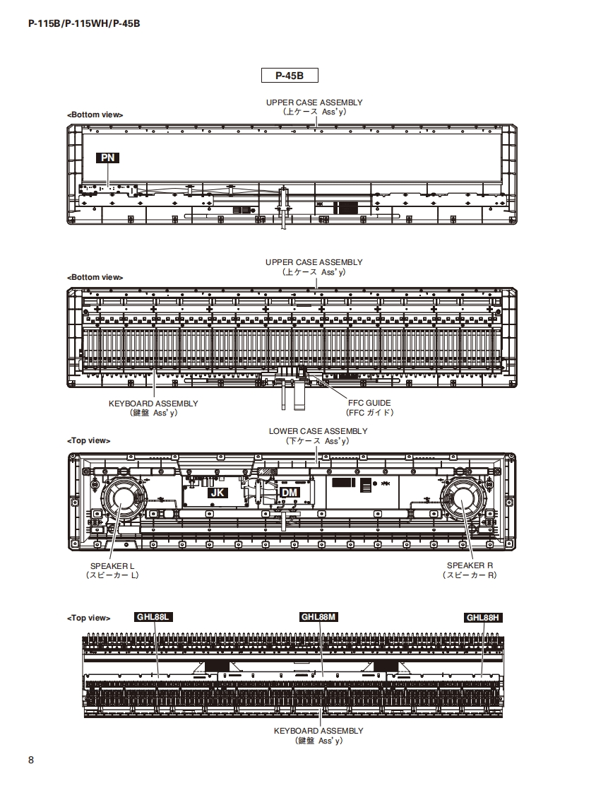 DIGITAL PIANOP-115B/P-115WH/P-45BSERVICE MANUALP.115BP-115WHP.45B■CONTENTS(目次)SPECIFICATIONS(総合仕横)......·...3DATA BACKUP AND INITIALIZINGPANEL LAYOUT(Ur礻儿L亻T7卜).::.5(バy夕了yプ匕初期化).68CIRCUIT BOARD LAYOUT(ユ二y卜レ亻T卜).7USER DATA BACKUPDISASSEMBLY PROCEDURE(分解手順).·...·.9(1-圹-子-夕のy夕了y).......70/71CIRCUIT BOARDS(-卜基板☒)。·...25PARTS LISTTEST PROGRAM(テ又卜プ口5ラA)40/50BLOCK DIAGRAM(ブ口y夕ダ亻T5ラ厶)DM CIRCUIT BOARD CHECK METHODIRING DIAGRAM(基板桔線☒)(DM一卜于工y夕方法).....60/62CIRCUIT DIAGRAM(回路☒)SYSTEM BOOTING FLOWCHART(起動口-于ヤ-卜)...64/66CL001909米YAMAHAHAMAMATSU.JAPANCopyright (c)Yamaha Corporation.All rights reserved.PDF fo'15.02