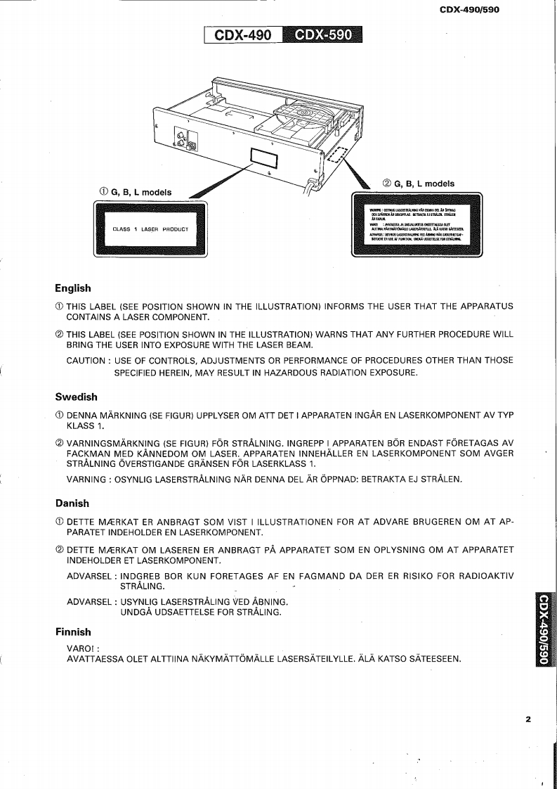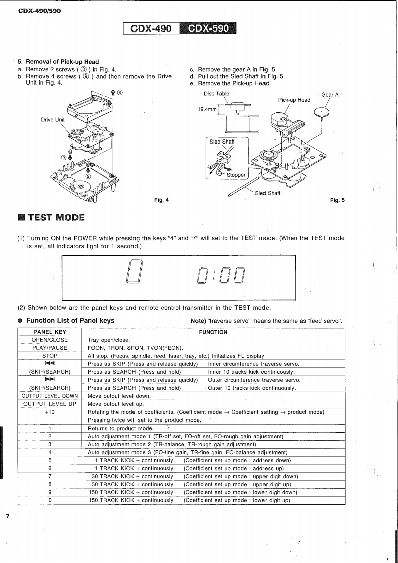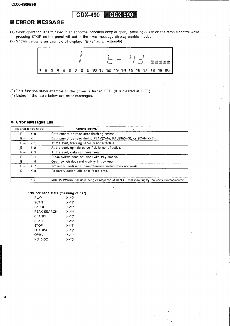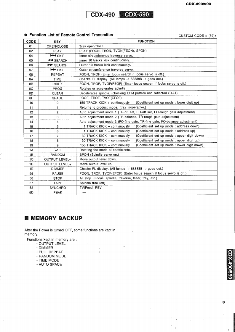 COMPACT DISC PLAYERCDX-490/590SERVICE MANUALIMPORTANT NOTICEbepred for thefred YAMA Retalers and their service peronnel.known and understood by the users,and have therefore not been restated.WARNING:inyov mmere o oue o omwe advise all YAMAHA product owners that all service required should be performed by an nuthorizedYAMAHA the ppointed.IMPORTANT:The presentan or sale ofThe data provided is believed to be accurate and applicable to the unit(s)indicated on the cover.The research,engineering.andservice deinmprovYAMAHAtModificre.thrand specifications are subcontactthe distributor's Service Division.WARNING:ad by meoIn te bomIMPORTANT:Tum the unit OFF during disassembly and parts replacement.Recheck all work before you apply power to the unit.圈CONTENTSTO SERVICE PERSONNEL12IC DATA….1520FRONT PANELS3PIN CONNECTION DIAGRAM.1REAR PANELS.34CDX-490 PRINTED CIRCUIT BOARD.2225SPECIFICATIONS.........5CDX-490 BLOCK DIAGRAM.26~27INTERNAL VIEW...61 BLOCKS.28~29DISASSEMBLY PROCEDURES4…67CDX-490 SCHEMATIC DIAGRAM .....30TEST M0D呢,78CDX-590 SCHEMATIC DIAGRAM..........31MEMORY BACKUP48CDX-590 BLOCK DIAGRAM.......…3233ERROR MESSAGE .....911CDX-590 PRINTED CIRCUIT BOARD.3437STANDARD OPERATION CHART..........12~13PARTS LIST....…3851DISPLAY DATA…14REMOTE CONTROL TRANSMITTER.....52cpx400600YAMAHA100539Y88A8剂3.2K-373 Printed in Japan '96.3
