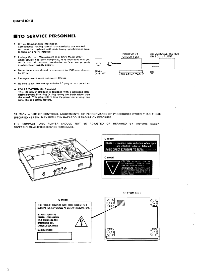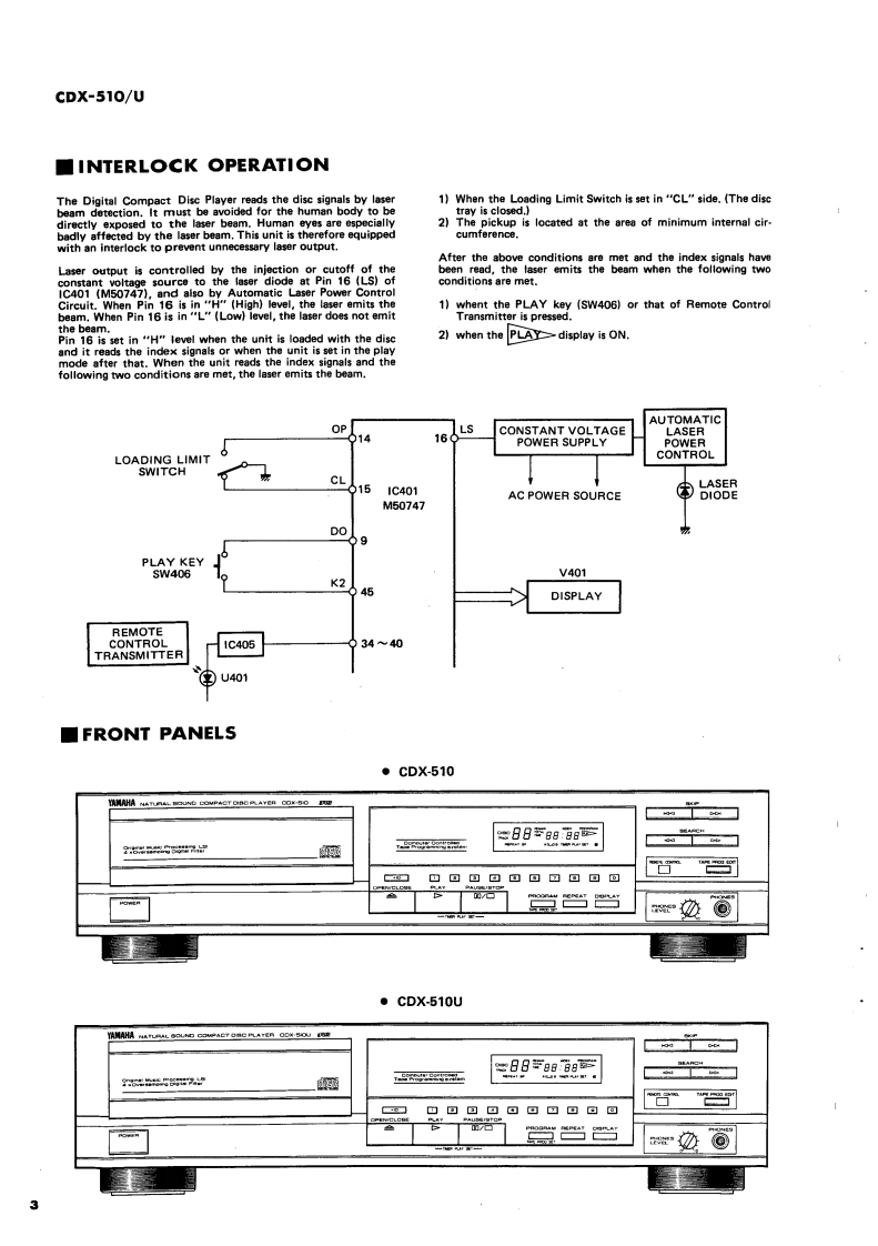COMPACT DISC PLAYERCDX-510/UV09211SERVICE MANUAL05a即9955doc只回旦可回问口回四回置当当边可IMPORTANT NOTICEThis manual has been provided for the use of authorized Yamaha Retailers and their service personnel.It has been assumed that basic service procedures inherant to the industry,and more specifically YanahaProducts,are already known and understond by the users,and have therefore not been restated.WARNING:t inmdents and failure o'thethrvcersould be performed bya athorizd Yamaha Retailer theappointed service representative.IMPORTANT:The presentation or sale of this manual to any individualorization,certificationor recognition of any applicableestablish a principle-agent relationship of any form.C00310WSThe data provided is believed to be accurate and applicable to the unit(s)indicated on the cover.The品engineering,and service departments of Yamaha are continually striving to improve YanahaDivision.WARNING:theYAMAHA程IMPORTANT:Turn the unit OFF during disassembly and parts replacement.Recheck all work bForeyou apply power to the unit.■CONTENTSTO SERVICE PERSONNEL...·...··,.1/2ADJUSTMENTS .....................19INTERLOCK OPERATION ................IC DATA….1925FRONT PANELS.·DISPLAY DATA·.........,-·26REAR PANELS.·,·WIRING.27SPECIFICATIONS ......................5PRINTED CIRCUIT BOARD ............28~31INTERNAL VIEW·SCHEMATIC DIAGRAM.......···...··32BLOCK DIAGRAM6PARTSLIST.......................33~41DISASSEMBLY PROCEDURES.··.·.·...·.7/8RS-CDX510....,,,,,。..43/43YAMAHA[010156YAMAHA CORP RATIONPO.Box 1.Hamamesu.Japan3.25k-034月色Printed in2an.'8朗.
