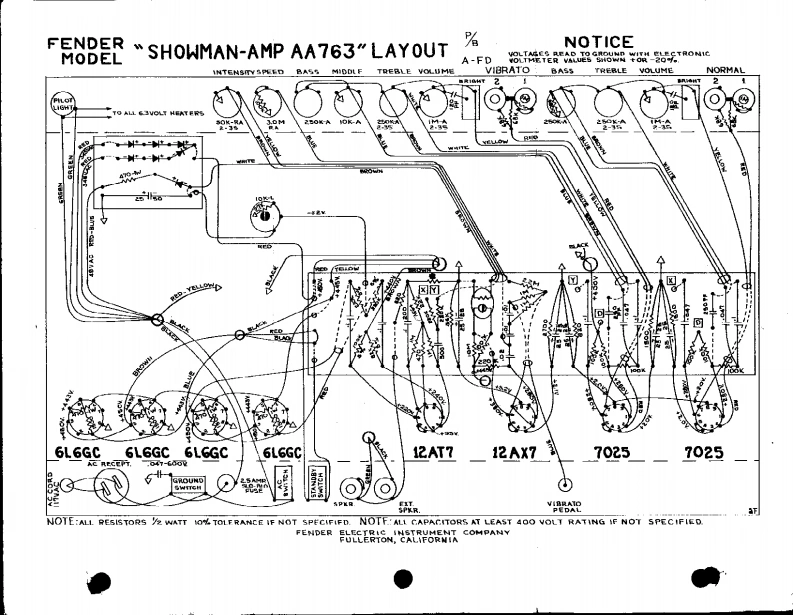 FENDERMODEL*SHOWMAN-AMP AA763"SCHEMATICNOTICE8品e99A5R8aoRMORE OP THE FOILOWING U.S#287708,DtD736台1,ID之6B9PAT64t5PFN0NGA-FD第%”点cs,共品7025-星50的443辈12AT73VIBRATO27056L6GC(4)PEDAL12AX7403V247A SINGLE SHOWMAN100n DUAL SHOWMANTR!125P34ATR2+2W13-125A2944432露安+4454VTRI-125P34ATR2251At44为TRA-IE5ASOATR27025400wA=0b52STANDBY070L222050+2,ov7a-229某350047-DTAL,多M.HEATERSRECEPTACL里回FLECTR IC INSTRUMENTCOMPANFULLERTON,CALIFORNIAsE4AL人MSROUNDED