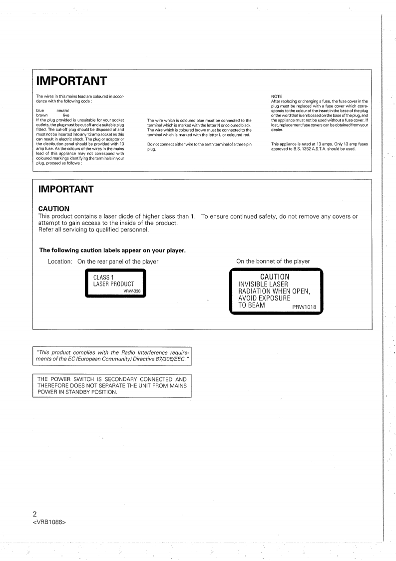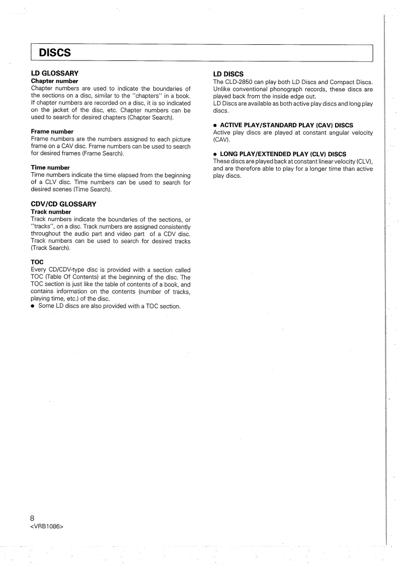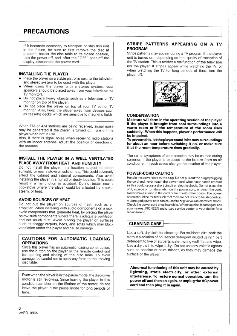 OperatingCD CDV LD PLAYERLaserDiscInstructionsCLD-2850PAL/NTSCdiscDIGITAL AUDIOLASERDISC.This player does not apply to business use,and CD-ROM/CD graphic discs cannot be played with this player.6-Thank you for buying this Pioneer product.Please read through these operating instructions so youwill know how to:operate your model properly.After youhave finished reading the instructions,put them away in asafe place for future reference.In some countries or regions,the shape of the power plugand power outlet may sometimes differ from that shown inthe explanatory drawings.However,the method ofconnecting and operating the unit is the same.WARNING:TO PREVENT FIRE OR SHOCK HAZARD,DO NOT EXPOSE THIS APPLIANCE TO RAIN ORMOISTURE.IMPORTANTCAUTIONRISK OF ELECTRIC SHOCKDO NOT OPENThe ightning flash with arrowhead,within anequilateralCAUTION:triangle,is intended to alert the user to the presence ofuninsulated 'dangerous voltage'within the product's8S28SscS599299enclosure thet may be of sufficient magnitude toPARTS INSIDE.REFER SERVICING TO QUALIFIEDliterature accompanying the appanceconstitute a risk of electric shock to persons.SERVICE PERSONNEL②PIONEERThe Art of Entertainment