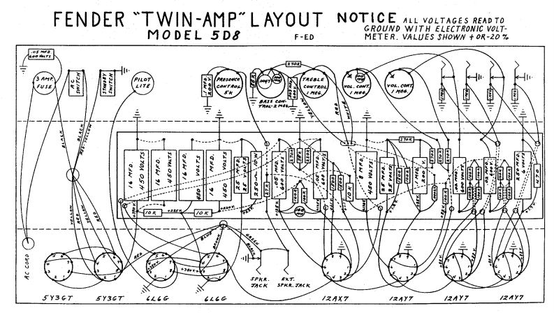 Fender-Twin-5D8-Schematic找手册网7小时前发布关注私信0.16MB2页038Fender-Twin-5D8-Schematic此内容为付费资源,请付费后查看¥19¥21黄金会员免费钻石会员免费立即购买您当前未登录!建议登陆后购买,可保存购买订单付费资源 第1页 / 共2页 第2页 / 共2页 已完成全部阅读,共2页 THE ENDMackie/Fender 文本预览 FENDER TWIN-AMP SCHEMATICMODEL SDSF-EDLlts/2AX705-400/2AY7EXTRAF-n-5PKK.2-25o W12Ay7AA九LL6G10 KSTANDBY/2AY7AC SWITCH3 AMP FUSENOTE EARLIER MODELS HAYEONE 5U9G IN PLACE OF 2 SY3GTs5Y36T5Y36TTO ALL 4.3 VOLT FILAMENTS 查看更多 收起部分 喜欢就支持一下吧收藏