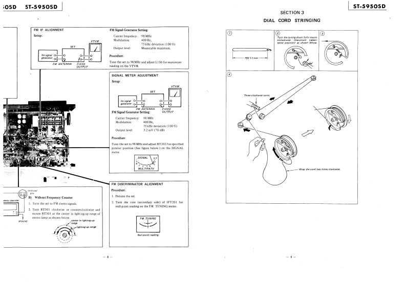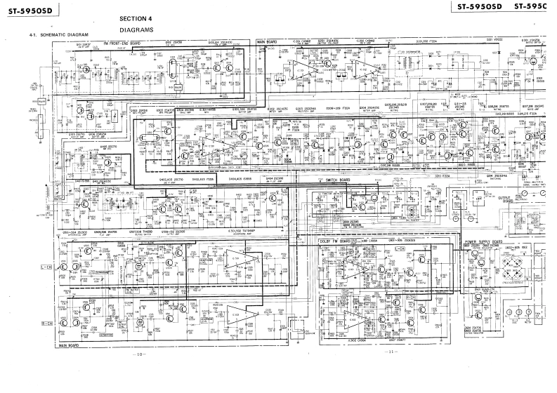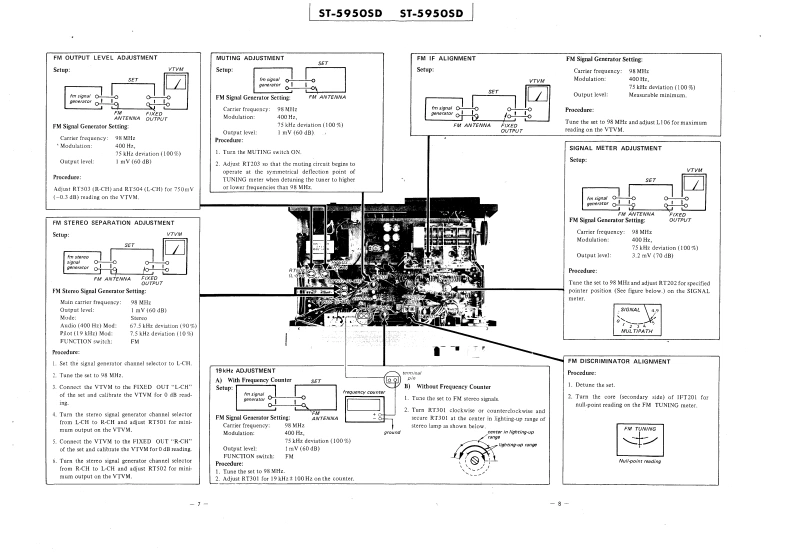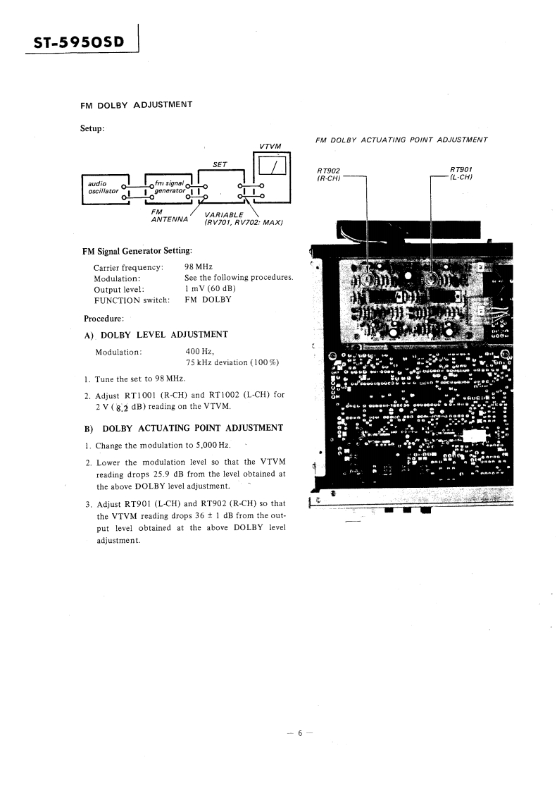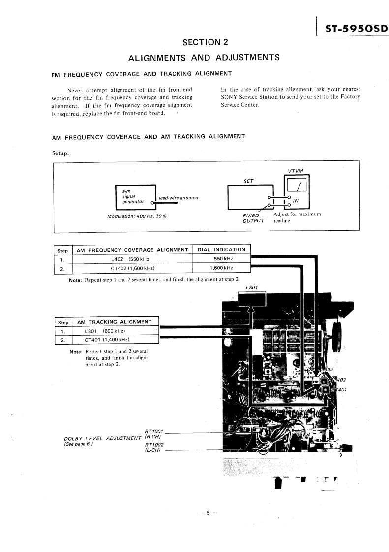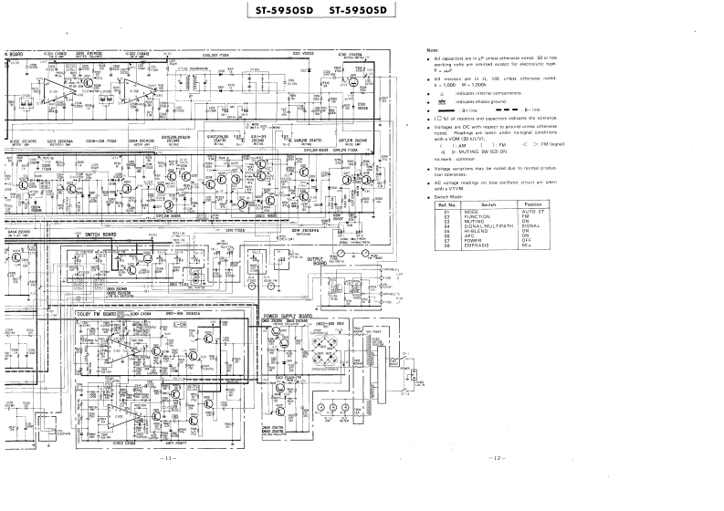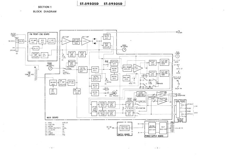 ST-5950SDUK ModelAEP ModelFM STEREO/FM-AM TUNERSPECIFICATIONSGENERALS/N Ratio:76dB (MONO)Outputs:FIXED:750mV,10k270dB(STEREO)VARIABLE:0-2V.3k2FM DISCRI:Harmonic Distortion:at 100 Hz,1 kHz0.1%(MONO】(8 n headphones)0.2%(STEREO)at 10kHzPower Requirements:110,127.220or240Vac0.15%(M0N01adjustable,50/60 Hz0.4%(STEREO)Power Consumption:32WStereo Separation:40 dB at 100 Hz50 dB at 1 kHzDimensions:Approx.460wl×168hl×331(dmm40 dB at 10 kHz18y%(wl×6%(hl×13(d)inchesIncluding projecting parts and controlsFrequency Response:20Hz-15kH2±9:6dBWeight:Approx.9.3 kg,20 Ib 8 oz (net)70dB11.7kg,25b13oz19 kHz,38 kHz Suppression:(in shipping carton)Muting Level:Approx.5uVFM SECTIONAM SECTIONTuning Range:87.5-108MHzTuning Range:530-1,605kHzAntenna Terminals:300 balancedAntenna:Built-in ferrite-bar antenna and75n coaxial cable inputexternal antenna terminalIntermediate Frequency:10.7 MHzIntermediate Frequency:468 kHzUsable Sensitivity:1.5 HV (MONO),IHFUsable Sensitivity:250 uV/m built-in antenna1.4 uV,S/N 26 dB (40 kHz deviation)100uV external antennaat1.000kH2Sensitivity at 50 dB Quieting:2.8V(MONO)35V (STEREO)Image Rejection:45 dB at 1,000 kHzmage Rejection:90d8S/N Ratio:50 dB at 50 mV/mIF Rejection:100dBHarmonic Distortion:0.5%at50mV/m,400HzSpurious Rejection:100d8AM Suppression:56 dBCapture Ratio:1.0d8Selectivity:85dBSONYThis set is equipped with DOLBY FM circuit.'Dolby'and the double-D symbol are the trade marksof Dolby Laboratory Inc.Noise reduction systemmanufactured under license from Dolby Laboratory Inc.SERVICE MANUAL