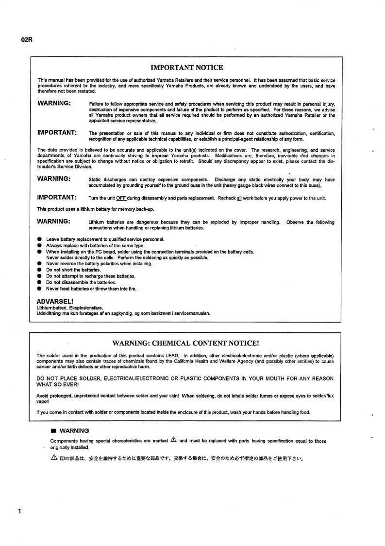 DIGITAL RECORDING CONSOLESERVICE MANUAL■CONTENTS(目次)SPECIFICATIONS(瓮合仕横).2/10LSI PIN D1 SCRIPTION(LS端子機能表).50DIMENSIONS(寸法☒).171 C BLOCK DIAGRAM (ICブ口之夕☒)57BLOCK DIAGRAM(F6y7女TT分5)..1BCIRCUIT BOARDS(y一卜基板☒)62CIRCUIT BOARD WIRING(基板桔粽☒)..20NSPECTIONS(検查)....108/128CIRCUIT BOARD LAYOUT(ユ二y卜L亻T卜).22TEST PROGRAM(行又卜寸口5ラ4).115/135PANEL LAYOUT(IR礻儿亻Pヴ卜).…28ERROR MESSAGES(I-¥y乜-).125/145DISASSEMBLY PROCEDURE(分解手順)..34MIDI DATA FORMAT (MIDI子-夕7才-マy卜)148THE PROCEDURE OF THE INSTALLATION/EXCHANGEMIDI IMPLEMENTATION CHART ...............160OF RAM OF MEMORY EXPANSION KIT(ME4M)CIRCUIT DIAGRAMS(回路☒)..161(×毛少-越張丰y卜ME4M)RAM②取付/交换手順.45PARTS LISTYAMAHA CORP.PA011295HAMAMATSU.JAPAN19951101-6800002.665K-6831 Printed in Japan '95.12