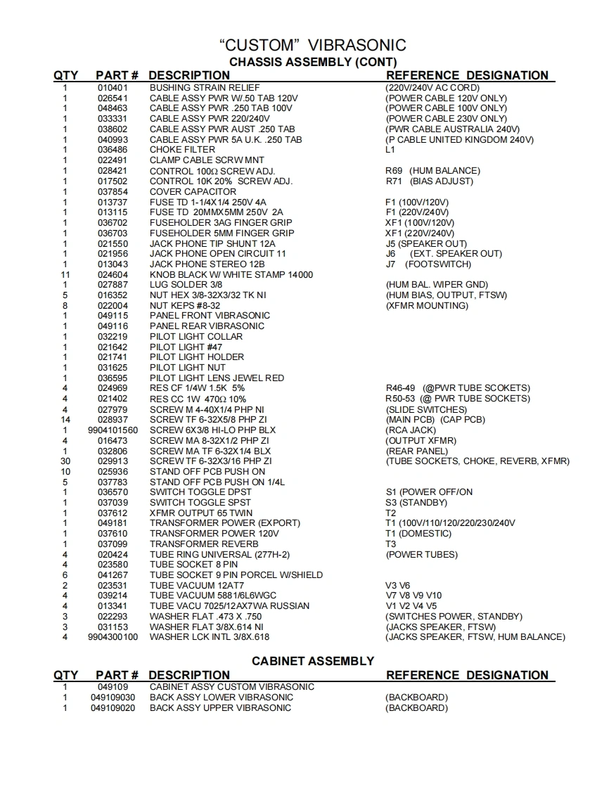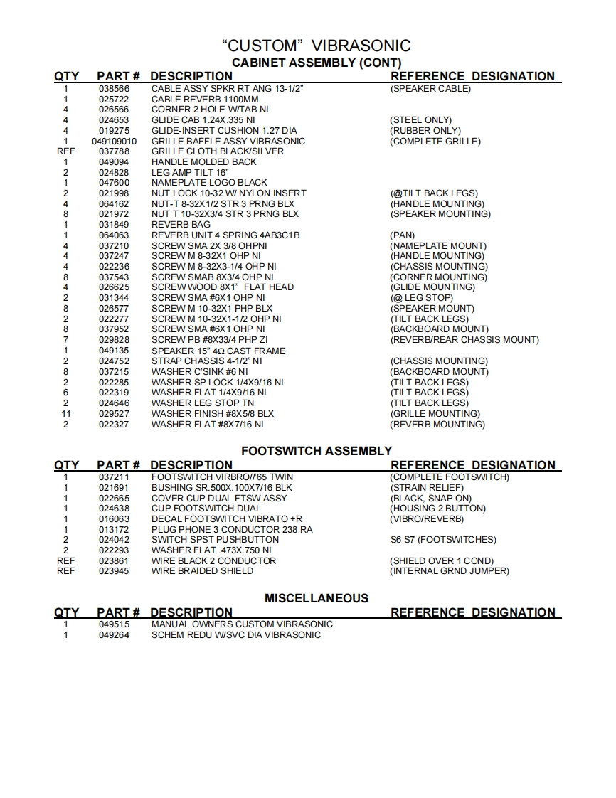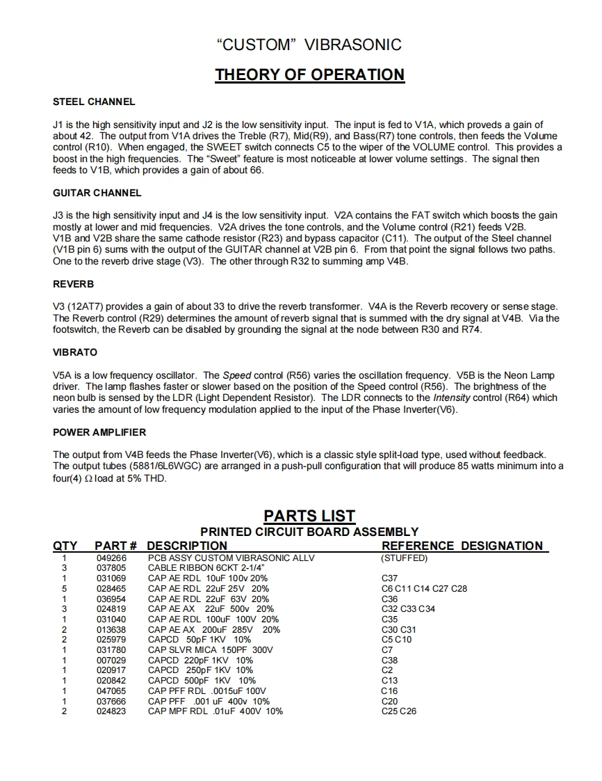 芬达Fender_vibrasonic维修手册含电器原理图找手册网7小时前发布关注私信0.86MB9页025芬达Fender_vibrasonic维修手册含电器原理图此内容为付费资源,请付费后查看¥19¥21黄金会员免费钻石会员免费立即购买您当前未登录!建议登陆后购买,可保存购买订单付费资源 第1页 / 共9页 第2页 / 共9页 第3页 / 共9页 第4页 / 共9页 第5页 / 共9页 第6页 / 共9页 第7页 / 共9页 第8页 / 共9页 第9页 / 共9页 已完成全部阅读,共9页 THE ENDMackie/Fender 文本预览 “CUSTOM'VIBRASONIC AMPp/n021-5200-000(120V0ELECTRONICSSERVICE MANUALCONTENTS:NoticesSpecificationsTheory of operationParts lists:PCB assemblyChassis assemblyCabinet assemblyFootswitch assemblyMiscellaneousSchematics/diagramsFender Musical Instruments Corp.7975 North Hayden Road Scottsdale,AZ 85258 查看更多 收起部分 喜欢就支持一下吧收藏