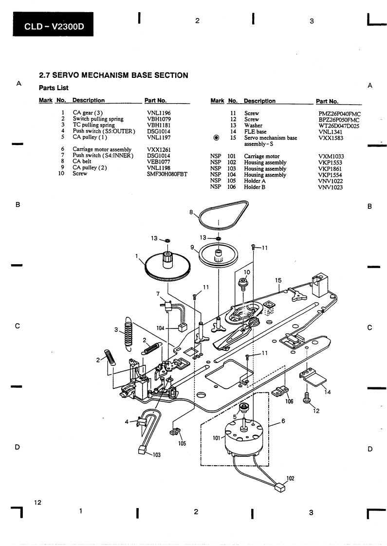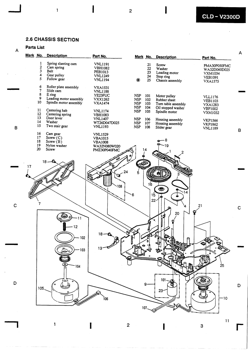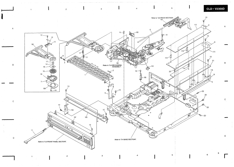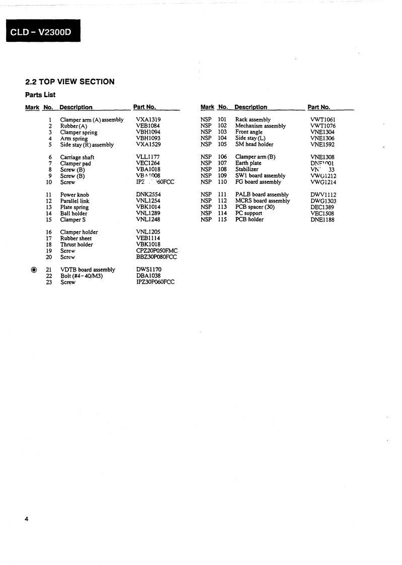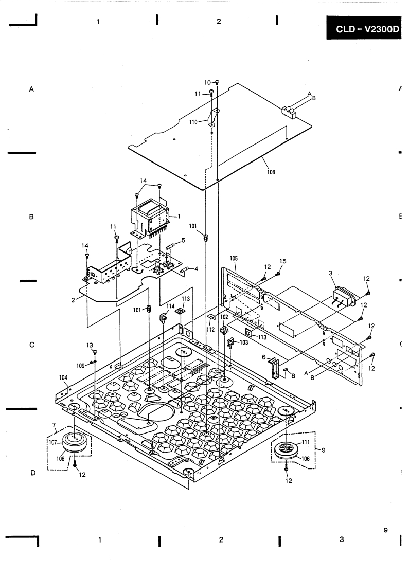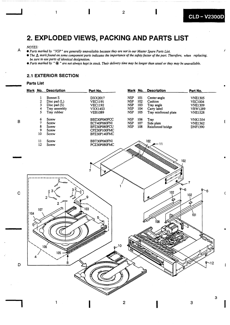 PIONEERThe Art of EntertainmentServicec manualORDER NO.ARP2599CD CDV LD PLAYER■-23OODCLD-V2300D HAS THE FOLLOWINGTypePower RequirementRemarksWGZAC220-240VThis manual is applicable to the WGZ.CONTENTS1.SAFETY INFORMATION......25.PCB PARTS LIST…632.EXPLODED VIEWS,PACKING6.ADJUSTMENTS…68AND PARTS LIST........37.PANEL FACILITIES…73.PCB LOCATION........*…158.SPECIFICATIONS…784.SCHEMATIC AND PCB CONNECTIONDIAGRAMS…16PIONEER ELECTRONIC CORPORATION 4-1,Meguro 1-Chome.Meguro-ku.Tokyo 153.JapanPIONEER ELECTRONICS SERVICE INC.P.O.Box 1760.Long Beach.California 90801 U.S.APIONEER ELECTRONICS OF CANADA,INC.300 Allstate Parkway Markham.Ontario L3R OP2 CanadaPIONEER ELECTRONIC [EUROPE]N.V.Haven 1087 Keetberglaan 1.9120 Melsele.BelgiumPIONEER ELECTRONICS AUSTRALIA PTY.LTD.178-184 Boundary Road,Braeside.Victoria 3195.Australia TEL:[03)580-9911PIONEER ELECTRONIC CORPORATION 1992IFJ NOV.1992 Printed in Japan