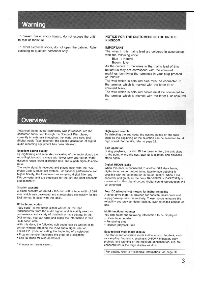 微电子时空基准带好音乐的休闲时光SONY3-765-6491(0fzmcu.taobao.comDIGITAL AUDIO TAPE DECKDTC-1000ESOPERATING INSTRUCTIONSpage3Before operating the unit,please read this manual thoroughlyand retain it for future reference.MODE D'EMPLOIpage 32Avant la mise en service de cet appareil,priere de lire attentivementce mode d'emploi que l'on conservera pour toute reference ulterieure.MANUAL DE INSTRUCCIONESpagina 62Antes de utilizar la unidad,lea este manual detenidamentey conservelo para futuras referencias.0具加Digital AudioTapeSONY1987 by Sony Corporation