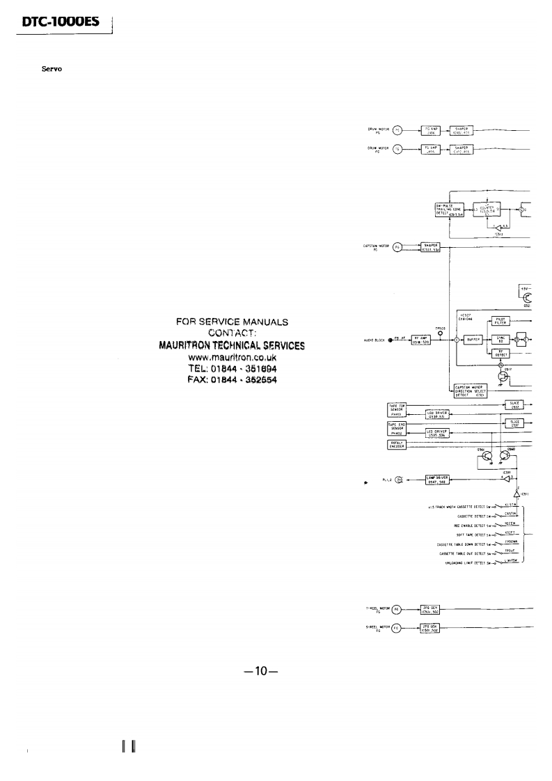 9T6-1000ESSERVICE MANUALAEP ModelUK ModelFOR SERVICE MANUALS微电子时空基准带好音乐的休闲时光CONTACT:fzmcu.taobao.comMAURITRON TECHNICAL SERVICESwww.mauritron.co.ukT套L:01844·351694SPECIFICATIONSFAX:01844·352554SystemDigital audio tape recorderGeneralTapeDigital audio tapeRecording systemPower requirementsRotary head220V AC,50/60Hz(AEP model)Recording time120 minutes (with DT-120)240V AC,50Hz (UK model)Tape speedPower consumption48W8.15mm/sDrum rotationDimensionsApprox.2.000 rpmApprox.470×100×420mmwh/间Error correctionDouble Reed Solomon code(18⅓×3ys×16 inches)Number of channel2 channels,stereoincl.side woodDIA conversion16-bit linearApprox..430×100×420mmwh/间Frequency response2-22.000Hz±0.5dB(161y×32%s×16 inches)Signal to noise ratioexcl.side woodMore than 92 dBDynamic rangeWeightMore than 90 dBApprox.12 kg (26 ib 7 oz)Total harmonic distortionLess than 0.0055%incl.side woodWow and flutterBelow measurable limitnputSupplied accessoriesRemote commander (1).....RM-R1Input jacksJack typeImpedanceRated input leverSony batteries SUM-3 (NS)(2)LINE INPhono50 kohms-10 dBsAudio connecting cords (2 phono plugs x 2 phono plugs,DIGITALPhono75 ohms0.5 Vp-pstereo,for line inputs and outputs)(2)OutputScrews to secure the cabinet (4)Remote commander (supplied)....RM-R1Output jacksJack typeImpedanceRated outputLoadRemote control systemInfrared controlimpedancePower requirements3 V DC,with R6 (size AA)batteriesLINE OUTPhono470 ohms-10 dBsMore thanDimensionsApprox..67×175×18 mm (w/hid)10 kohms2/×6%×"%inches)HEAD-Stereo150 ohms0-28mW32 ohmsWeightApprox.145 g (5 oz)PHONESphoneinct.batteriesDIGITALPhono750.5 Vp-p75 ohmsOUTThe side wood panels on both sides of the deck areTapedetachable.After removing the screws,secure the cabinetTrack pitch13.6m(20.4μmwith the supplied lock screws (four M4x6).Sampling frequency48 kHz,44.1 kHz,32 kHzFor safety,before doing this,be sure to disconnect the ACModulation system8-10 Modulationpower cord from the AC outlet.Transter rate2.46 Mbit/sec.(before modulation)DIGITAL AUDIO TAPE DECKMICROFILMSONYAUD11