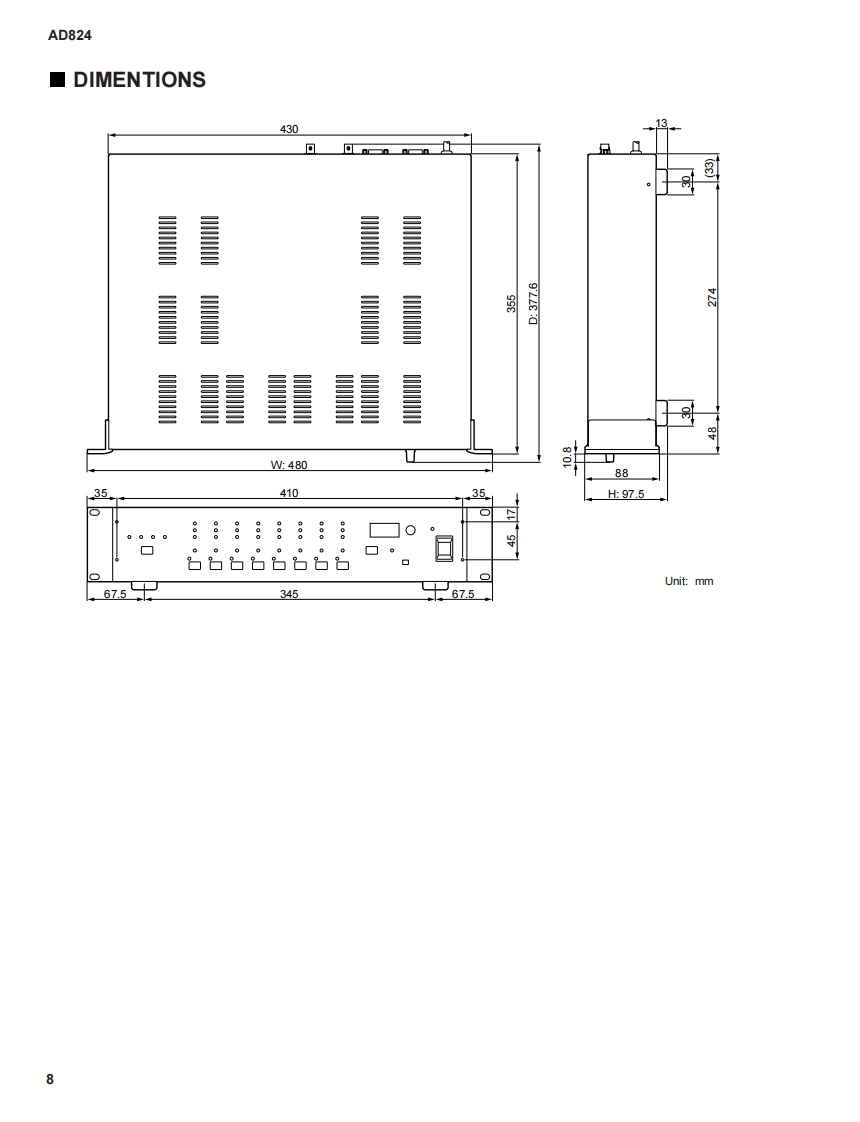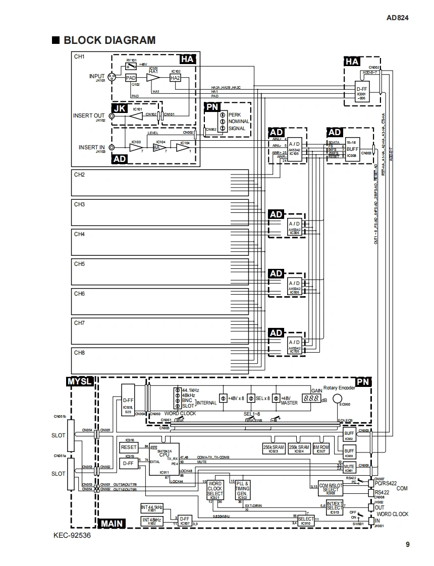 AD CONVERTERAD824SERVICE MANUALS®AHA。。。■CONTENTSSPECIFICATIONS…3…PANEL LAYOUT…5…CIRCUIT BOARD LAYOUT............................................6…DIMENTIONS…8BLOCK DIAGRAM·9.DISASSEMBLY PROCEDURE…40…LSI PIN DESCRIPTION…4…IC BLOCK DIAGRAM…16…CRCU|T BOARDS…9…NSPECTI○W…36…TEST PROGRAM...........39…FLASH ROM UPGRADE43…ERROR MESSAGES…45PARTS LISTThis document is pinted on chlodine free (ECF)paper with soy ink.OVERALL CIRCUIT DIAGRAMPA011523YAMAHA200003-150000HAMAMATSU.JAPAN1.45K-9731KPrinted in Japan 00.07