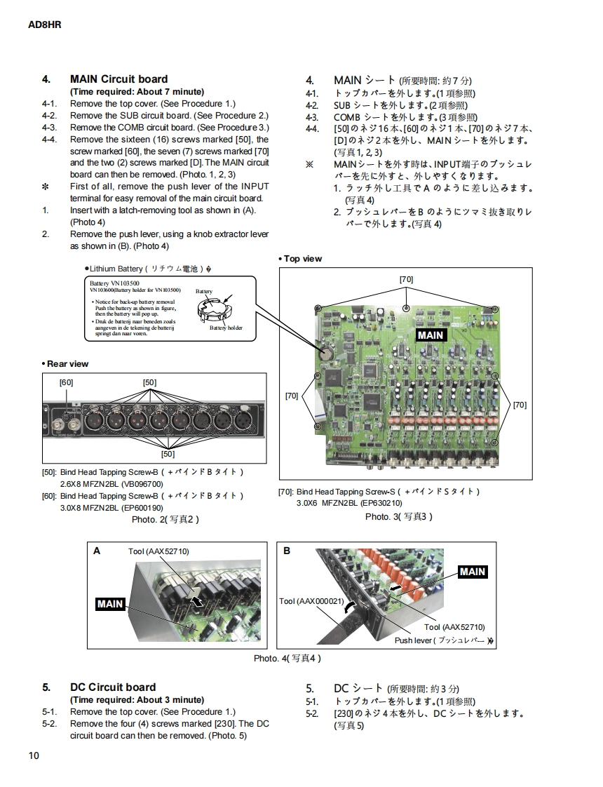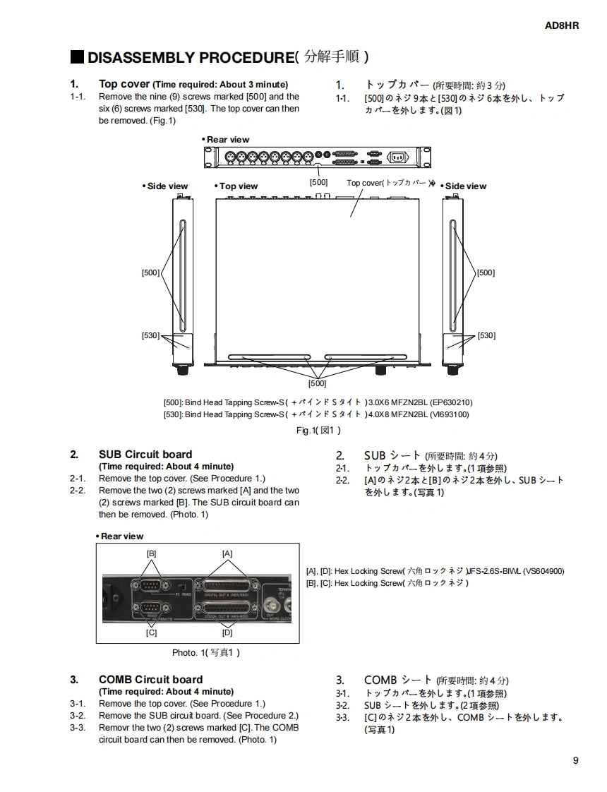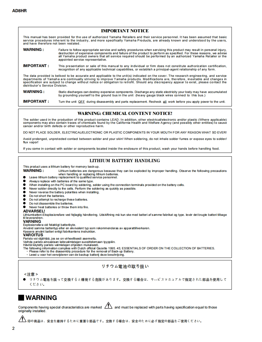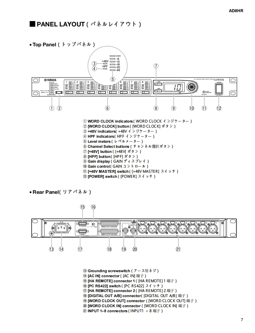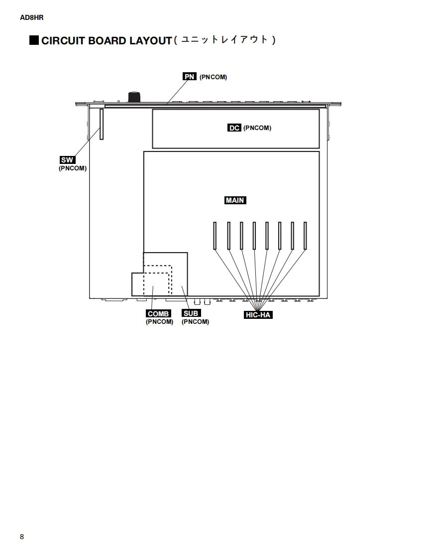 AD CONVERTER WITH REMOTE PREAMPAD8HRSERVICE MANUALYAMAHA■CONTENTS(月次)SPECIFICATIONS(然合仕樣.3DIMENSIONS(寸法☒)PANEL LAYOUT(パ礻儿y才了ヴ卜).7CIRCUI1 T BOARD LAYOUT(1二y卜亻7ヴ卜..8DISASSEMBLY PROCEDURE(分解手順)....9LS1 PIN DESCRIPTION(LSI端子機能表).13IC BLOCK DIAGRAM(ICブ口y夕☒).…19CIRCUIT BOARD(之一卜基板☒).22GAIN SETUP(GAIN設定).。30TEST PR0GRAM(テ又卜ブ口分ラㄙ)..........32/43INSPECT1ONS(然合検查).54/58UPGRADE(Y-ョy了yブ).62/65ERROR MESSAGES(工ラ-Xy七-y)...68PARTS LISTBLOCK DIAGRAM(ブ口y夕ダ亻了分ラㄙ)CIRCUIT DIAGRAM(回路☒)YAMAHAPA011722HAMAMATSU,JAPAN200403-260000Copyright (c)Yamaha Corporation.All rights reserved.PDF-K6341M'04.03