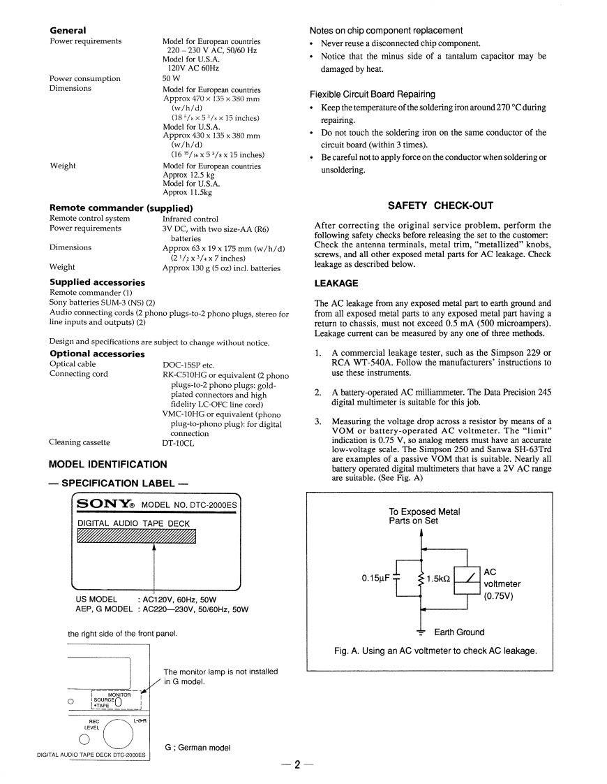DTC-2000ESSERVICE MANUALUS ModelAEP ModelPhoto AEP Model微电子时空基准带好音乐的休闲时光SBMfzmcu.taobao.comDigital Audio TapeSuper Bit MappingModel Name Using Similar MechanismNEWDATM-53 (US,AEP Model)MD Mechanism TypeDATM-54 (German Model)SPECIFICATIONSTapeDigital audio tapeInputRecording headRotary headJack typeImpedanceRated input levelRecording timeStandard:120 minutesLong-play mode:240 minutes(withLINE INPhono jack47 kilohms4dBDT-120)DIGITAL INPhono jack75 ohms0.5Vp-p,t20%Tape speedStandard:8.15 mm/sLong-play mode:4.075 mm/sDIGITAL INOptical jackDrum rotationStandard:2,000 rpmMICPhone jack47 kilohms-44 dBLong-play mode:1,000 rpmError correctionDouble-Read Solomon codeOutputTapeRatedLoadTrack pitch13.6m(20.4μ4m)Jack typeImpedanceoutputImpedanceSampling frequency48 kHz,44.1 kHz,32 kHzModulation system8-10 ModulationLINE OUTPhono jack470 ohms-4dBMore than 10Transfer rate2.46 Mbit/seckilohmsNumber of channels2 channels,stereoStereoPHONES220 ohms1.3mW32 ohmsD/A conversion (Quantization)phone jackStandard:16-bit linearDIGITGALPhono jack0.5Vp-p,Long-play mode:12-bit non-linearOUT75 ohms±20%75 ohmsFrequency responseStandard:2-22,000 Hz (+0.5 dB)Long-play mode:2-14,500 HzDIGITAL OUT (optical jack)wavelength:660 nm(±0.5dB)Signal-to-noise ratioStandard:more than 94 dBLong-play mode:more than 94 dB-Continued on next pageDynamic rangeStandard:more than 94 dBLong-play mode:more than 94 dBTotal harmonic distortionStandard:less than 0.0035%(1 kHz)Long-play mode:less than 0.075%(1 kHz)Wow and flutterBelow measurable limit (+0.001%DIGITAL AUDIO TAPE DECKW.PEAK)SONY