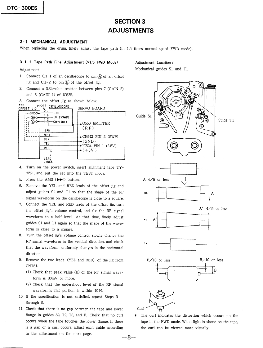 微电子时空基准带好音乐的休闲时光fzmcu.taobao.comDTC-300ESSERVICE MANUALAEP ModelModel Name Using Similar Mechanism DTC-M100Tape Transport Mechanism TypeDATM-12SPECIFICATIONSTapeDigital audio tapeGeneralRecoeding headRotary head120 minutes (with DT-120)8.15 mm/sAC.HDrum rotationApprox.2,000 rpmDimensionsApprox.470 x 115 x 330 mm (wi/h/d)Emoe comrectionDouble Head Solomon code(18%/x 4%x 12'%e inches)incl.sidewood.projecting parts and controlsTapeWeightTrack ptchRemote commander (supplied)2.46 Mbit/sec.Remote control systemIndrared controlumber ol channe2 channels.stereoPower requirements3 V DC.with two R6 (size AA)batteriesDA comversion16-b linearDimensionsApprox.67 x 20 x 175 mm[wh/d)222,000He0.5dB[2xex 6"/s inches)Signal to noise ratioMore than go d8WeightApprox 140 g(5 oz)incl.batteriesDynamic rangeMore than 90 dBTotal harmonic distortion Less than 0.0085%(1 kHz)Supplied accessoriesWow and tlutterBelow measurable Fmit0.001%W.PEA3s28-2o心p4e女Inputline inputs and outputs)(2)Cleaning cassette (1)Jack typoImpedanceRated input levelLINE INphono jack47 kohms-108sFor satety.DIGITAL INP的G的jack75 ohms0.5Vp-p,20%DiGITAL IN optical jackDesign and specifications subject to change without notice.OutputJack typeimpedanceRatedLoadoutputmDedanceLINE OUT170 chme10cgMore than10 kohmsHEAD.220c白ms10 mW32 ohmsPHONESphone jack.660 nmDIGITALphono jack75 ohms0.5 Vp-pOUT20%DIGITAL AUDIO TAPE DECKSONY