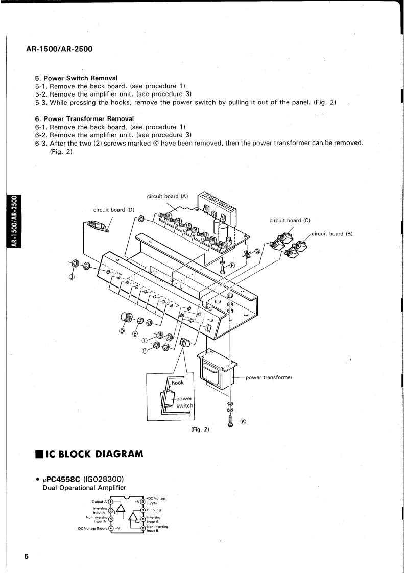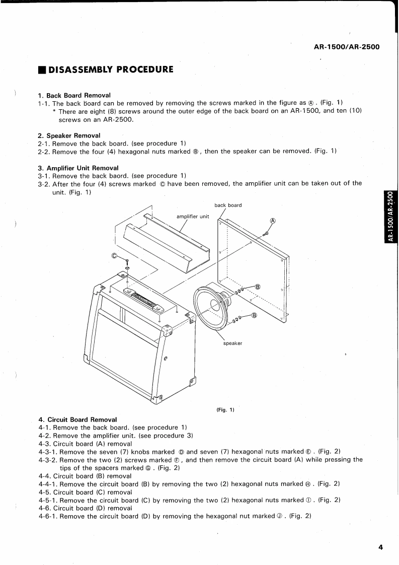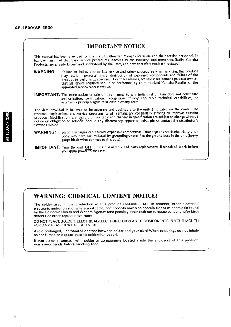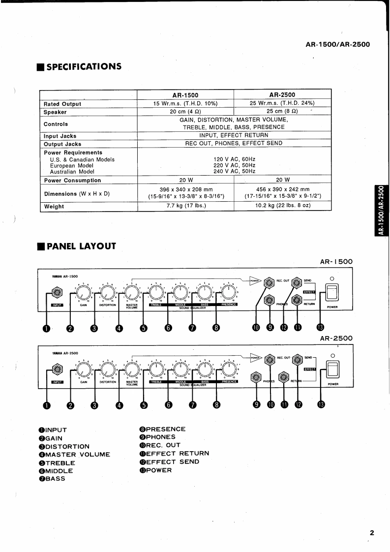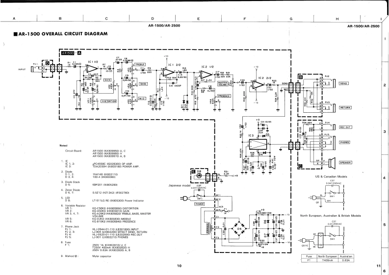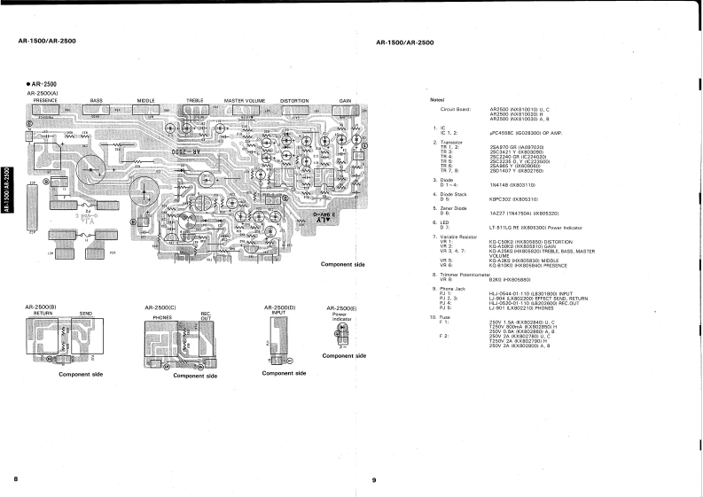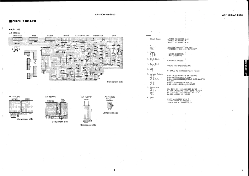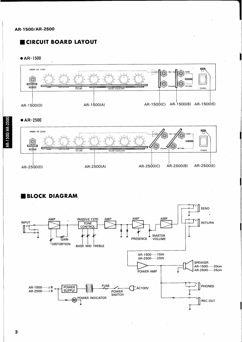 GUITAR AMPLIFIERSAR15O▣/AP-25OOSERVICE MANUAL1005130.1/5300-00AR-2500■CONTENTSSPECIFICATIONS…PANEL LAYOUT........CIRCUIT BOARD LAYOUT................2233BLOCK DIAGRAM..DISASSEMBLY PROCEDURE...................................IC BLOCK DIAGRAM…45CIRCUIT BOARD....................6AR-1500 OVERALL CIRCUIT DIAGRAM........10AR-2500 OVERALL CIRCUIT DIAGRAM............12PARTS LISTLM 011074YAMAHA CORPHAMAMATSU.JAPAN0.15K-449e Printed in Japan '91.03