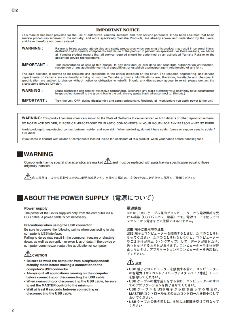 ADVANCED INTEGRATION USB STUDIOc12SERVICE MANUALstoinbergsteinberg■CONTENTS(目次)GENERAL SPECIFICATIONS(一般仕樣)3PANEL LAYOUT(/パ礻儿亻了7卜).4CIRCUIT BOARD LAYOUT(ユ二y卜亻予ヴ卜)5DISASSEMBLY PROCEDURE(分解手順).6LSI PIN DESCRIPTION(LS1端子機能表)8IC BLOCK DIAGRAM(ICブ口y夕☒).10CIRCUIT BOARDS(之一卜基板☒).11INSPECTIONS(検查)..13/19SOFTWARE INSTALLATION(y7卜7rT)>Z卜-L)25/29START-UP SEQUENCE(起動-ヶ>又).33/34PARTS LISTBLOCK DIAGRAM(ブ口y夕ダ亻T5ラ厶)CIRCUIT DIAGRAM(回路☒)SY011960YAMAHA20091026.才-ブ寸与1入HAMAMATSU,JAPANCopyright (c)Yamaha Corporation.All rights reserved.PDF'09.09