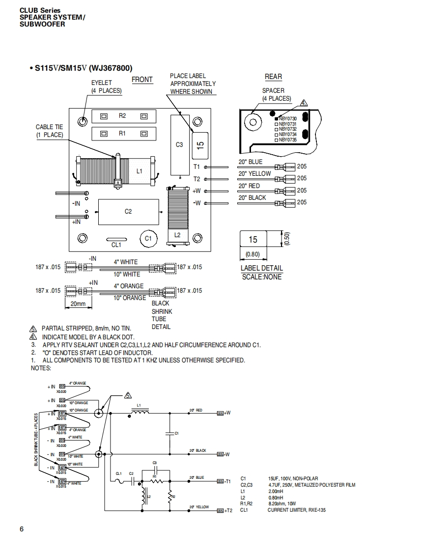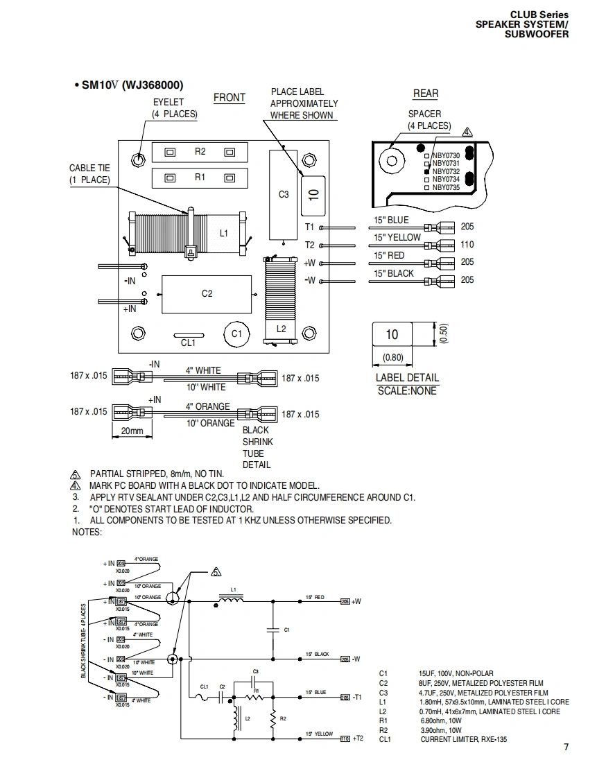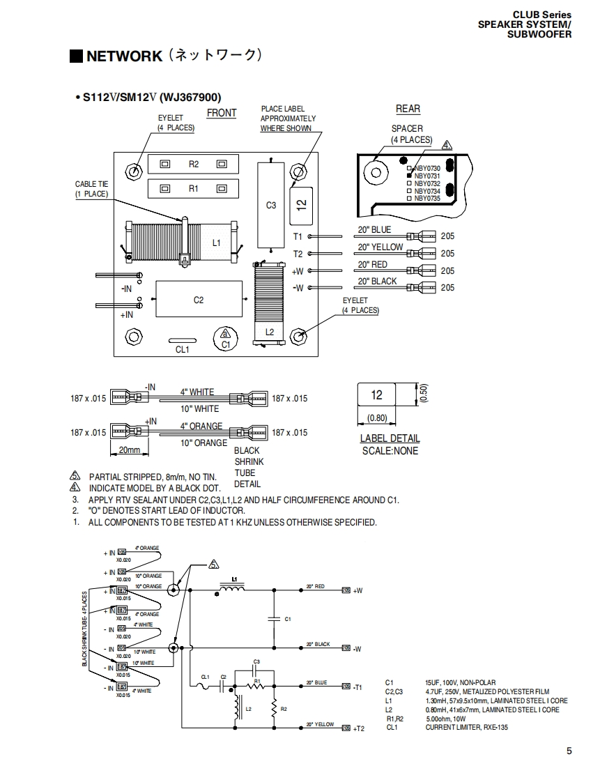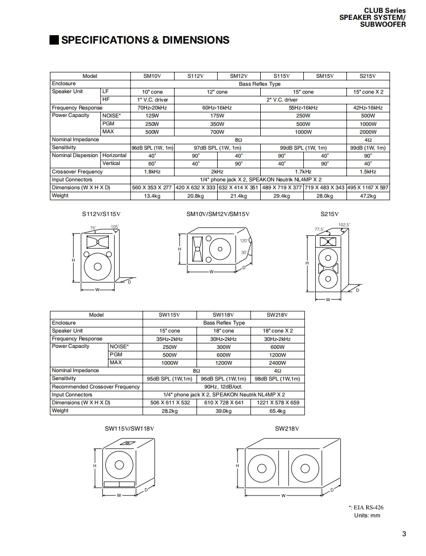 CLUB Series SPEAKER SYSTEM/SUBWOOFERSERVICE MANUAL型S112VS115VS215VSM10VSM12VSM15VSW115VSW118V■CONTENTS(目次)SPECIFICAT1ONS&DIMENSIONS(豁合仕樣&寸法☒)..3/4NETWORK(礻y卜7-)NIRE HARNESS(ワ亻ヤ-八-礻又).5DISASSEMBLY PROCEDURE(分解手順).10●S112V/S115V.....10●S215V..14SW218V●SM10V..17·SM12V/SM15V.2Use this manual for products with a serial number of 7 figures·SW115V/SW118V23(本了二ュ下儿t、制造番号护7桁②商品飞乙使用(龙ě(。)·SW218V.…6An example of a serial number(造番号例)NEUTRIK NL4FC PLUG WIRINGNK01069(又ピ口NEUTRIK NL4FCブラ5)配線)287 figures(7粉)PARTS LISTPA0118673W18N3878-86,99YAMAHASW218V:200706.136.500S112V:200706-68,250SM10V:200706-68,250HAMAMATSU,JAPANS115V:200706-78.750SM12V:200706-73500Copyright (c)Yamaha Corporation.All rights reserved.PDFH'07.07S215V:200706.157500SM15V:200706-84,000