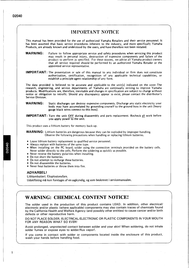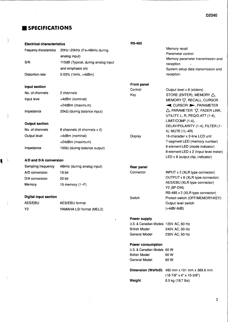 DIGITAL CHANNEL DIVIDERD皇+SERVICE MANUAL罗6020■CONTENTS(目次)SPECIFICATIONS(然合仕横)…2/4PANEL LAYOUT(パネ儿L亻了ヴ卜)…6CIRCUIT BOARD LAYOUT(ユ=yk1了卜)7VIRING(基板結粮☒)……8BLOCK DIAGRAM(ブ口y夕夕1了艺ラ么)…12DIMENS引ONS(寸法☒)…14DISASSEMBLY PROCEDURE(分解手頒)…15LS引PIN DESCRIPTION(LSl端子機能表)…2OIC BLOCK DIAGRAM(ICブ口y夕☒)…24CIRCUIT BOARDS(之一卜基板☒)…26TEST PROGRAM(テ又卜ブ口夕与4)…39/43INSPECT1ONS(桅查)…42/45INITIALIZATION(RAM办才二中ラ千丈):42/46PARTS LISTYAMAHA CORP.LM01I096HAMAMATSU.JAPAN3.0K-394 Printed in Japan '92.03
