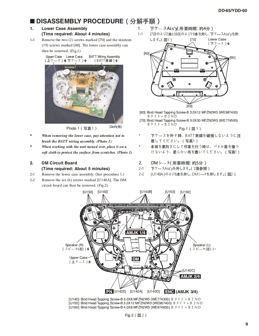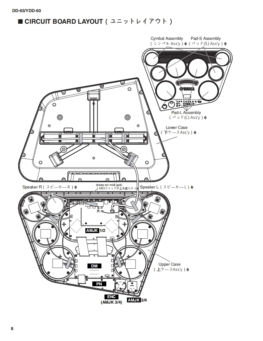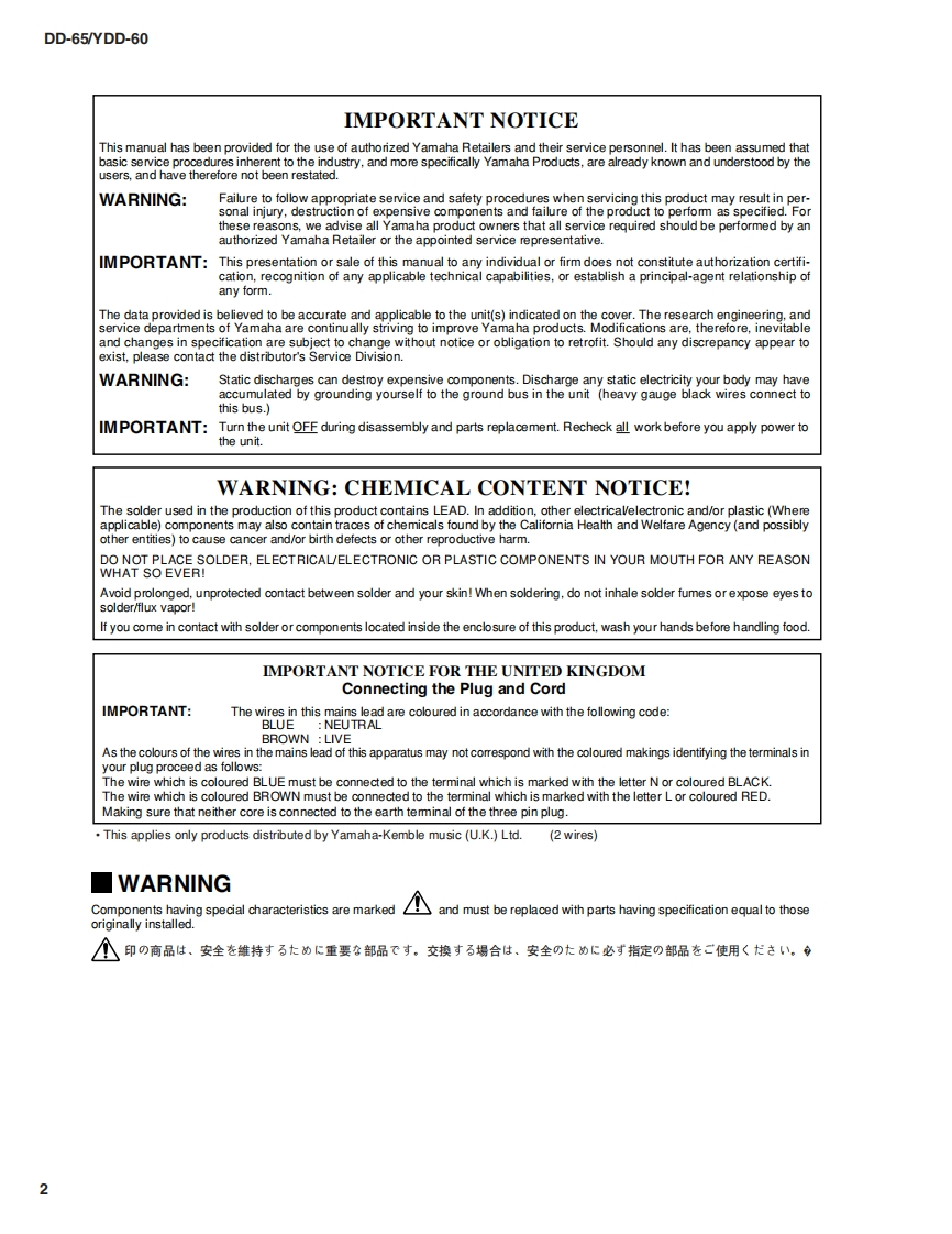 Digital Percussion▣-55/YDD-60SERVICE MANUAL数000001DD-65YDD-60YDD-60 is a model only for foreign countries except Japan.(YDD60体海外李用毛デ儿C寸。)■CONTENTS(目次)SPECIFICATIONS(然合仕樣).....3/4BLOCK DIAGRAM(ブay夕分亻7分ラㄙ).5PANEL LAYOUT(パ礻儿L亻77卜)6CIRCUIT BOARD LAYOUT(1二y卜亻了ヴ卜).8DISASSEMBLY PROCEDURE(分解手順).9LSI PIN DESCRIPTION(LS|端子機能表).12IC BLOCK DIAGRAM(ICブ口y夕☒).15CIRCUIT BOARDS(一卜基板☒)..16TEST PROGRAM(テ又卜ブ口分ラㄙ).....20/23DATA BACKUP /INITIALIZATION(1一圹一デ一のバy夕了yブ/初期化)..2728SYSTEM BOOTING FLOWCHART(起動7口一于ヤ一卜)..…29/30MIDI IMPLEMENTATION CHART(MID1亻yブ)×yテ一之3之于ヤ一卜).31PARTS LISTOVERALL CIRCUIT DIAGRAM(然回路☒)YAMAHAPK001784HAMAMATSU.JAPANDD-65:20070701-才-才>ブラ1又Copyright(c)Yamaha Corporation.All rights reserved.KMD07.06