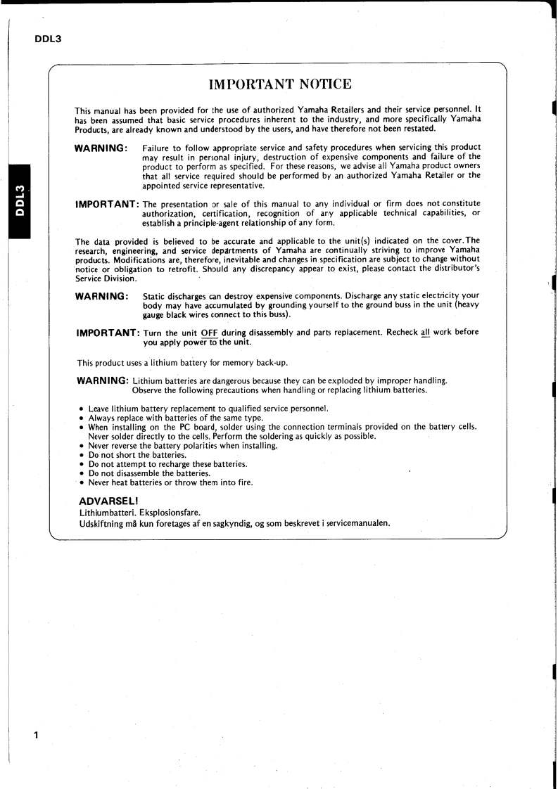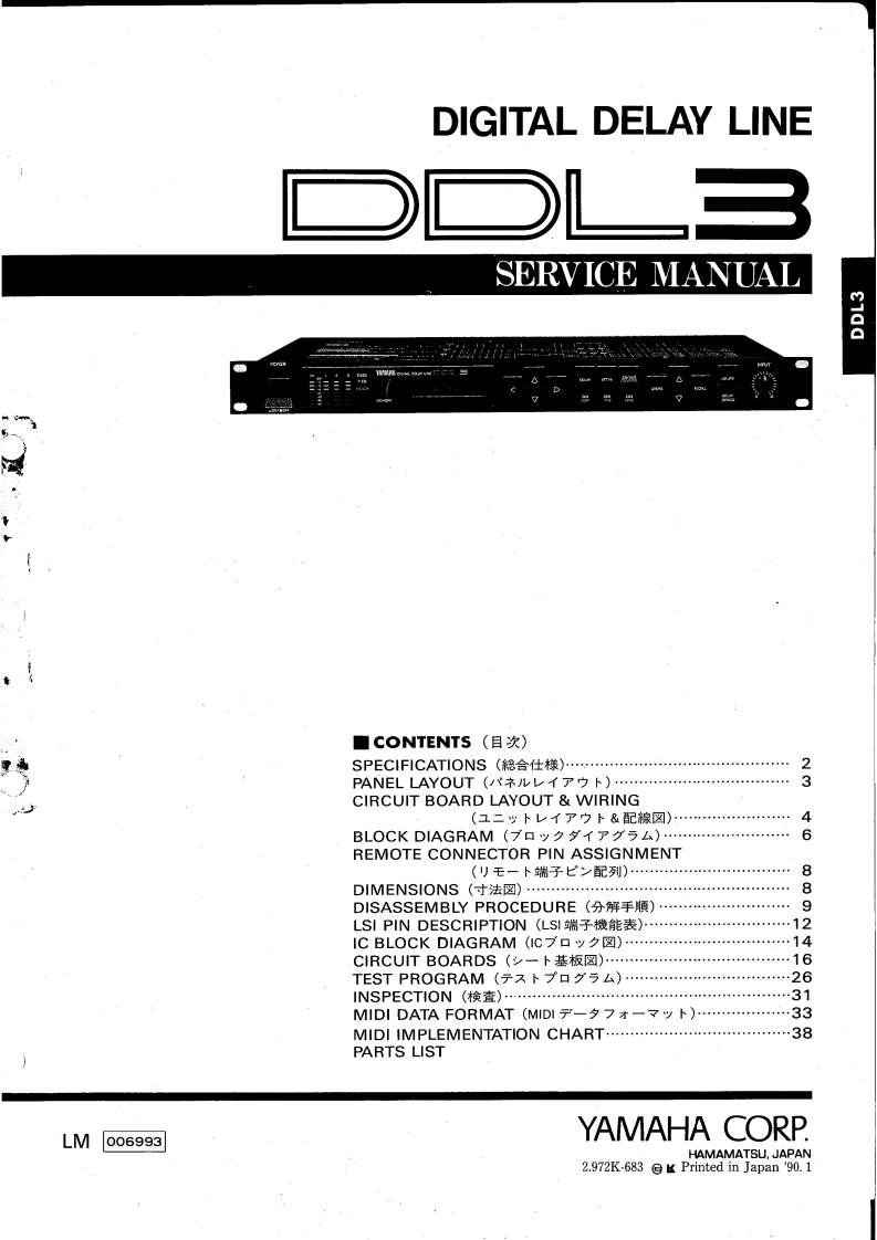 DIGITAL DELAY LINEDDL3/D1030SERVICE ADDITIONAL MANUALTHE DDL3 MODEL NAME CHANGEThe model name DDL3 has been changed to D1030.Another company has a similar product with the same name,constituting the name change.YAMAHAHAMAMATSU,JAPAN