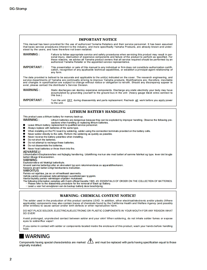 GUITAR PRE-AMPLIFIER WITH EFFECTS见有Som中SERVICE MANUAL零YAMAHAMASTERTREBLEMIDC美EBASSPRESENCE三恐■CONTENTSSPECIFICATIONS143/4PANEL LAYOUTBLOCK DIAGRAMCIRCUIT BOARD LAYOUT10WIRING11DISASSEMBLY PROCEDURE12LSI PIN DESCRIPTION15IC BLOCK DIAGRAM18CIRCUIT BOARDSTEST PROGRAM28色soERROR MESSAGESMIDI IMPLEMENTATION CHART32This document is prnted on chlorhe fee (ECF)paper with soy inkPARTS LISTOVERALL CIRCUIT DIAGRAMYAMAHAGA011537HAMAMATSU,JAPAN20001001-398001.57K-786 I.TPrinted in Japan 2000.09
