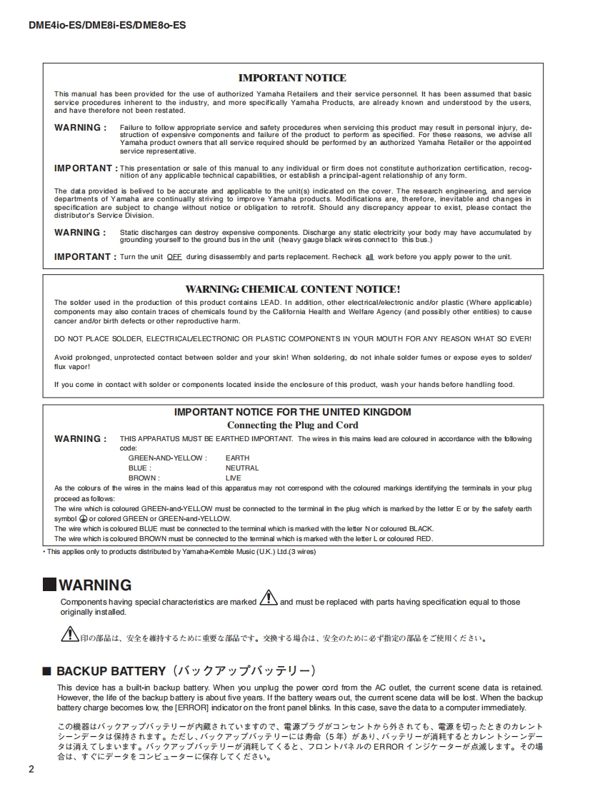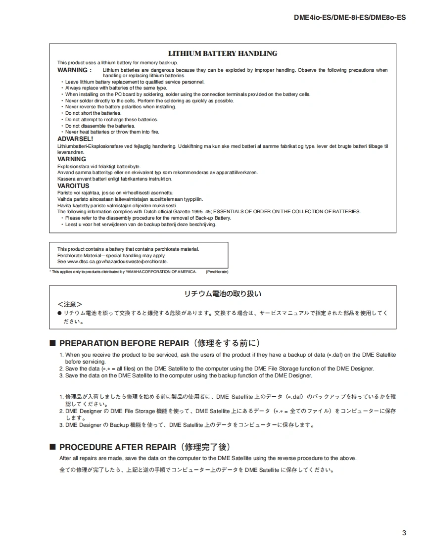 DIGITAL MIXING ENGINE SATELLITEDMEAio-ES/DME8i-ES/DMESo-ESSERVICE MANUALDME4io-ESDME8i-ESDME80-ES■CONTENTS(目次)SPECIFICATIONS(然合仕樣)..4SYSTEM FLOW CHARTDIMENSIONS(寸法☒).9(電源立古上于一ヶ又)》...118/119CIRCUIT BOARD LAYOUT(ユ二y卜y亻Tヴ卜).9About DME SATELLITE DATAPANEL LAYOUT(パ礻儿L亻予ヴ卜)..10(DME Satellitedデ-夕一1()....120/121WIRING(基板結線☒)..2TROUBLESHOOTINGDISASSEMBLY PROCEDURE(分解手順).13(卜ラブ儿之ュ-テ15)122/123LSI PIN DESCRIPTION(LS端子機能表).20ERROR MESSAGES(工ラ-Xy七-)124W125IC BLOCK DIAGRAM(ICブ口y夕☒)..28WARNING MESSAGESCIRCUIT BOARD(一卜基板☒)32(ワ-二方メy七-)124/125TEST PROGRAM(テ又卜ブ口5ラ4)..49/71DME FILE STORAGE126/127INSPECTIONS(検查)93/98BACKUP(Iバy夕Tyブ)128/129UPDATING PROGRAM AND BOOTMIDI IMPLEMENTATION CHART130(プ口5ラ4部匕-卜部0了y寸子-卜).102104MIDI DATA FORMAT..131WRITING COMPONENT/SCENE DATAPARTS LIST(口ポ-礻卜·-子-夕書老江办).106/110BLOCK DIAGRAM(ブ口y夕ダ亻予5ラ厶)WRITING VNP1 FIRMWARELEVEL DIAGRAM(儿ダ亻予5ラ厶)(VNP177-47工了の書ě认)..114/115CIRCUIT DIAGRAM(回路☒)INITIAL山ZNG(初期化)....116/117PA011857YAMAHADME4io-ES:200705才-ブ>ブ51又HAMAMATSU,JAPANDME8i-ES:200705才-ブブラ又DME80-ES:200705才-プ>yプ31久Copyright(c)Yamaha Corporation.All rights reserved.PDF KM '07.05