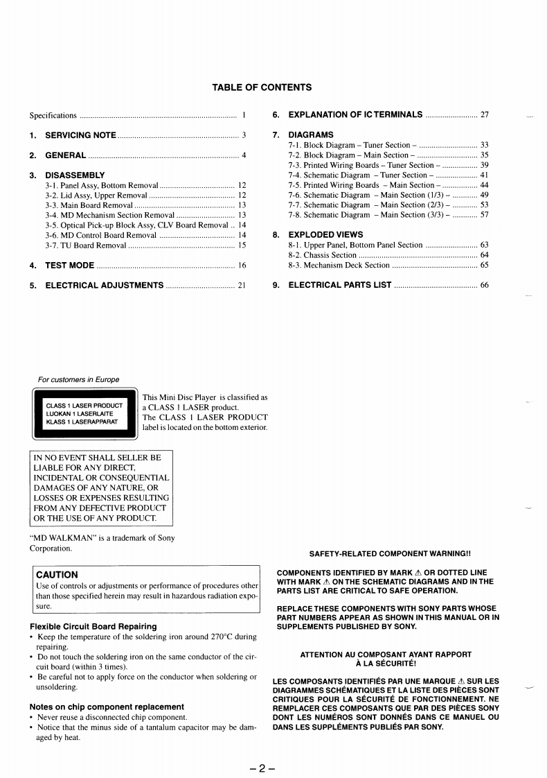 微电子时空基准带好音乐的休闲时光fzmcu.taobao.comMZ-F40SERVICE MANUALUS ModelCanadian ModelAEP ModelSONYEModelTourist ModelPhoto:US modelUS and foreign patents licensed from DolbyModel Name Using Similar MachanismNEWLaboratories Licensing CorporationMD Mechanism TypeMT-MZF40-109Optical Pick-up Mechanism TypeKMS-240A/J2NSPECIFICATIONSMD SectionGeneralAudio playing systemPower requirementsMiniDisc digital audio systemSony AC Power Adaptor AC-E45HG (EXCEPTLaser diode propertiesTo Model:not supplied),AC-E455A(TorMaterial:GaAlAsWavelength:780 nm220-230V AC.50/60 Hz (AEP MODEL).Emission duration:continuous120V AC.60Hz (US.Canadian model).100-240V AC.50/60Hz (E.Tourist model)Laser output less than 44.6 HW"This output is the value measured at a distanceTwo LR6(size AA)batteries (not supplied)of 200 mm from the objective lens surface on theNickel metal hydride rechargable batteryRotpbetwnh7mmspeareBP-DM20(not supplied)Dimensions400 rpm to 900 rpm (CLV)Approx.123×275x79.6mm(w/h/d)(5×Error correction1/×3/4in)Advanced Cross Interleave Reed Solomon CodeMass(ACIRC)Approx.200g(70oz)the player onlySampling frequencyApprox.293 g (103 oz)incl.a premastered MD44.1 kHzheadphones,and two Sony alkaline LR6 (SG)batteriesCodingSupplied accessoriesHeadphones with a remote control (1)EFM (Eight to Fourteen Modulation)Carrying case (1)Number of channelsEar pads (2)2 stereo channelsmonaural channelFrequency response20t20A0Hz±3dWow and FlutterBelow measurable limitOutputsHeadphones:stereo mini-jack,maximum outputlevel 15 mW 15 mW,load impedance 16 ohmRadio sectionFrequency rangeUS.Canadian ModelFM87.5-108MHzAM:530-1710kHzRADIO MINIDISC PLAYERAEP.E ModelFM:87.5-108MHzAM:531.1602kHzTourist ModelTV:1-12CHFM 76.0-90 MHzMICROFILMAM:531-1710kHzSONY