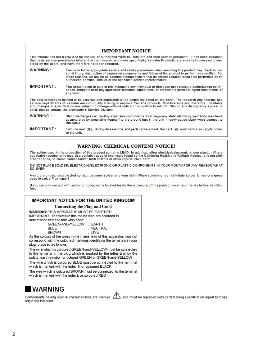POWERED SPEAKERS60-12SERVICE MANUALYAMAHA■CONTENTSSPECIFICATIONS3PANEL LAYOUT41101001ABLOCK DIAGRAMCIRCUIT BOARD LAYOUT15WIRINGDISASSEMBLY PROCEDURE6IC BLOCK DIAGRAMCIRCUIT BOARDS9IDLING ADJUSTMENT10OVERALL CIRCUIT DIAGRAMThis document is printed on chlorne fee (ECF)paper with soy ink.PARTS LISTYAMAHAGA011598HAMAMATSU,JAPAN20011001-398001.507K-844 FT Printed in Japan 2001.9